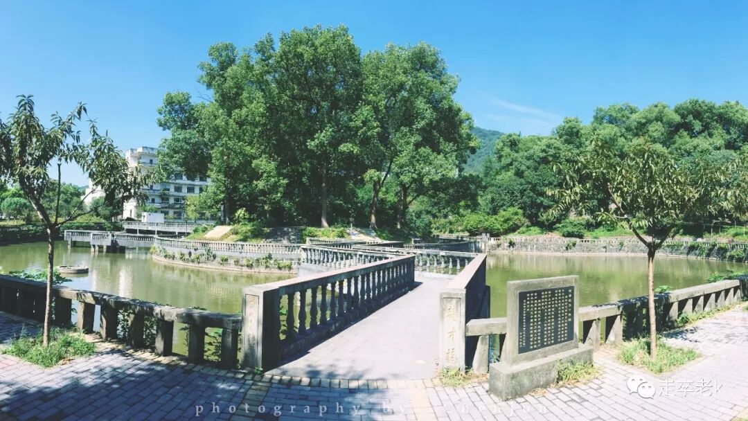 从桥右边下穿至桥下,穿过桥洞就是一幢老房子,一楼一底,中间有个高出的阁楼,形制多像一个礼堂类型的。穿过礼堂,有一个小型的盆景园,打造得非常古朴,是个凹造型的好地方。