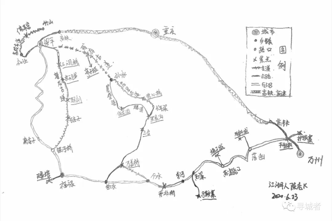 4、上图系K哥出发前草草画出来的万梁古道及寨堡探索干货,经过实地走访探索确系可以参考之攻略。