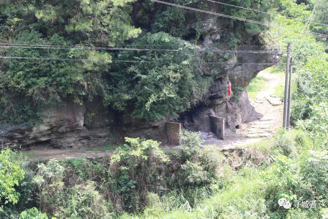 半山崖壁中残留的灶台,整块条石中开凿出来的灶洞,曾经是洞寨重要的生活区域,如今伴着野菇疯长。