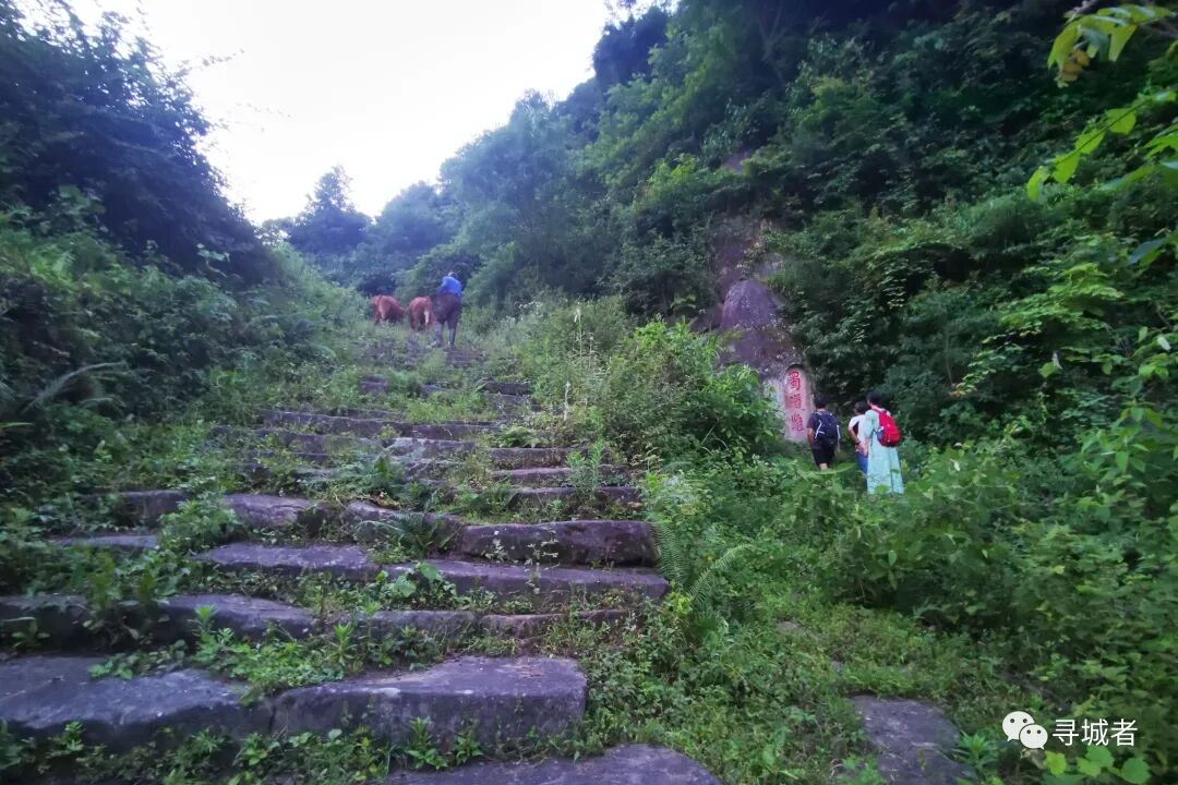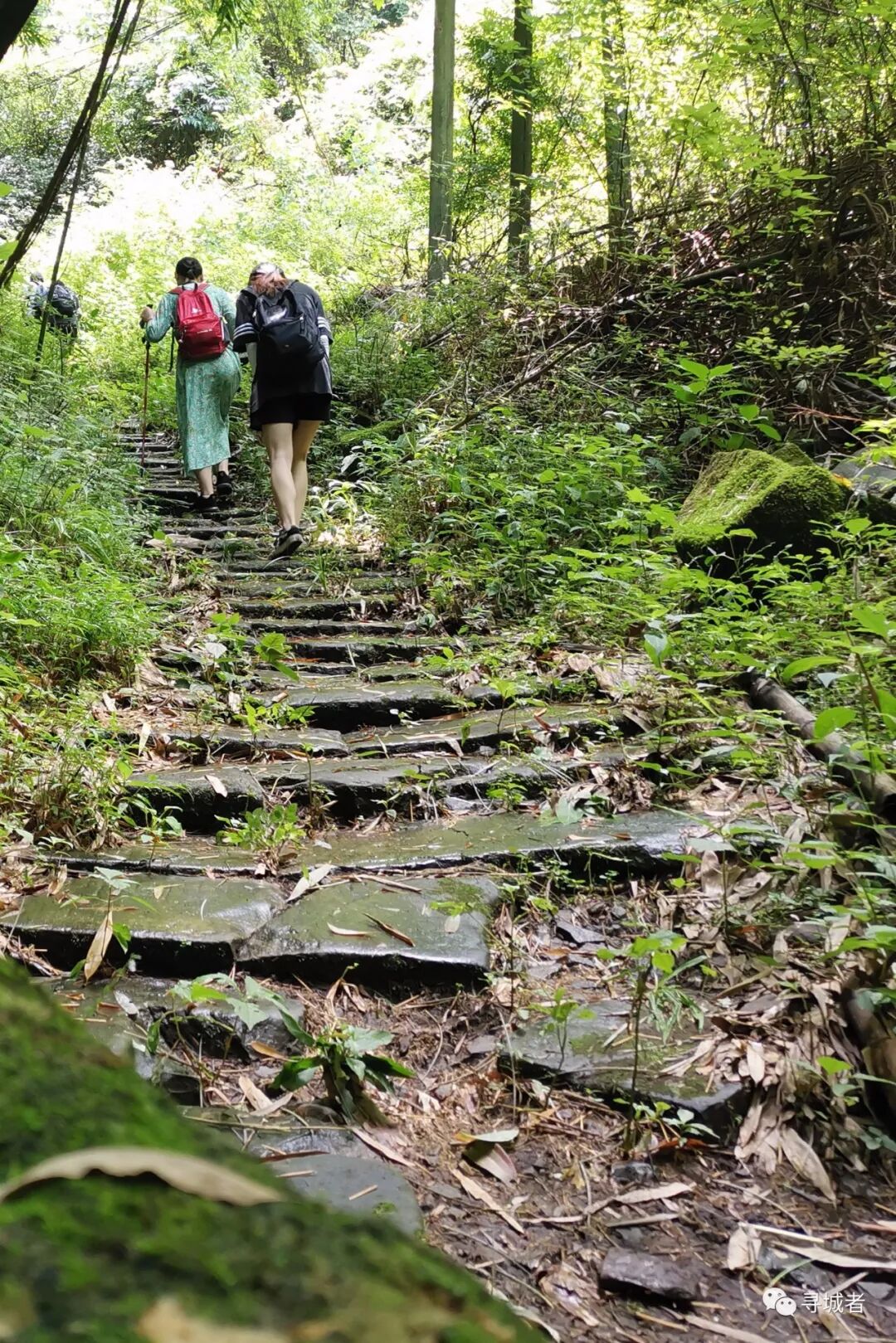 幽幽的古道深藏竹林之中,加之阳光甚少光谷,年久失修加之暴雨冲刷,许多路段早已长满湿滑的苔藓,一行人小心翼翼的攀爬着向上。