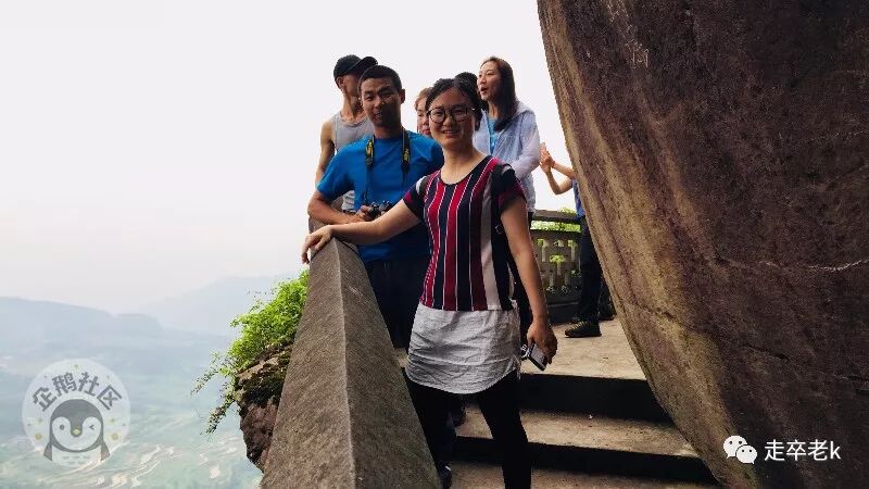 紧赶慢赶,行走在小分队的第一梯队,在这个通讯基本靠吼的地方,时而在山壁上大声吆喝着,左边是魏巍的红色崖壁,右边是高达百丈的绝壁,再夹着迷雾阵阵,真是有种身在仙境的感觉。