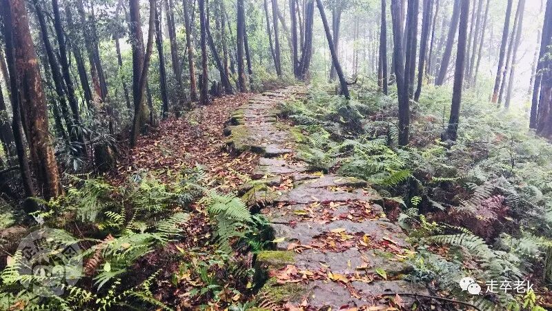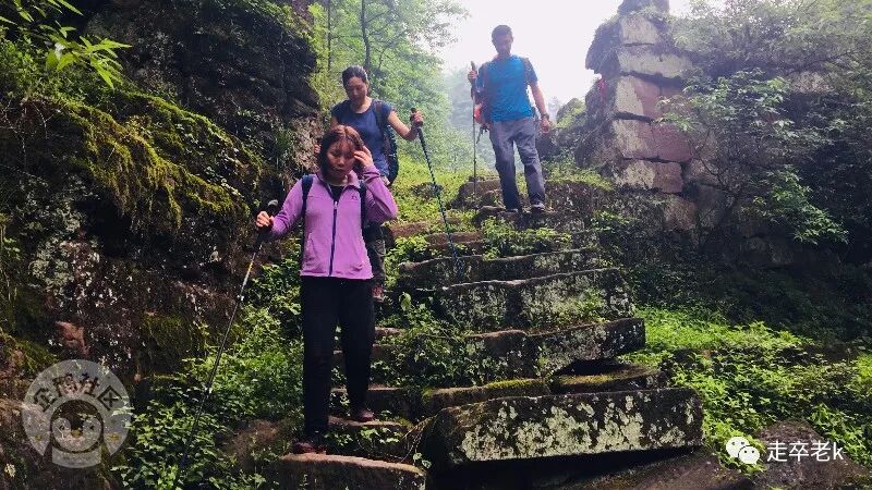 继续往下,盘旋周转于山脊之间,或是横切或是直下,苔藓铺满的条石被淋湿之后带来的湿滑,可是给了所有路过的小伙伴一个狠狠的下马威,无数的小伙伴尽皆折腰于此,一路跌滑一路摔倒。