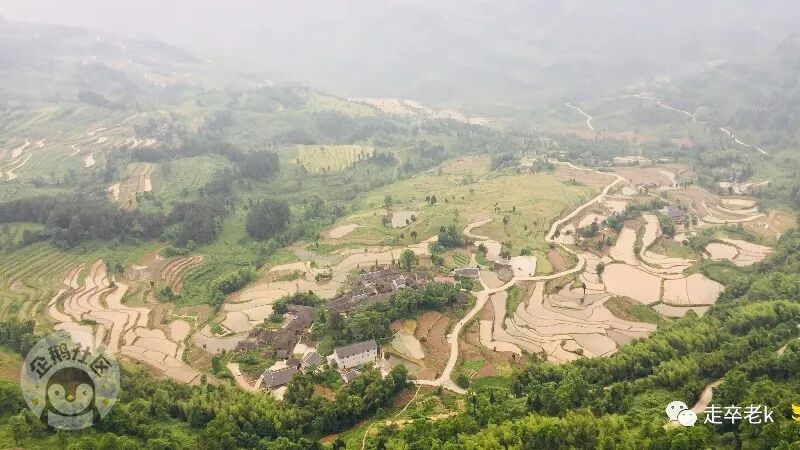 在山里折腾了一个多小时,翻过一个山脊终于视野开阔,太阳也依稀露个笑脸,前方依稀可见农家房屋几座。