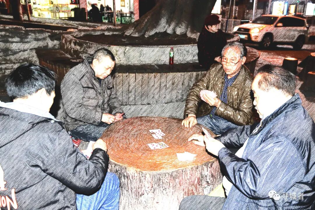 一行人想着它夜晚的喧嚣