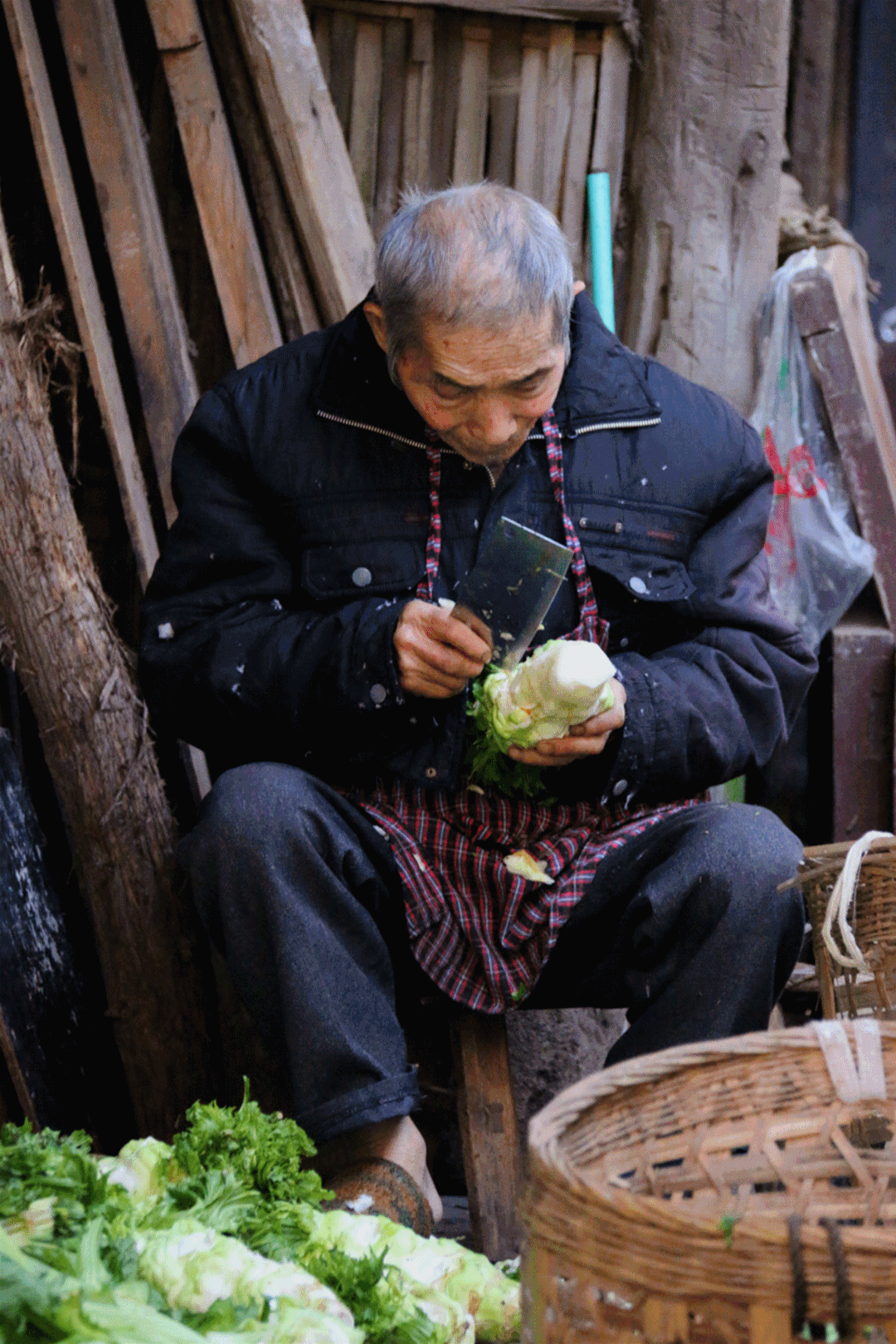 削菜头的大爷,拔鸭毛的婆婆,看报纸的大婶,所有的人都专心致志于手里的活计,任一切路过的喧嚣和围观。这些寻常生活里的场景,都是老街鲜活的生活样本。