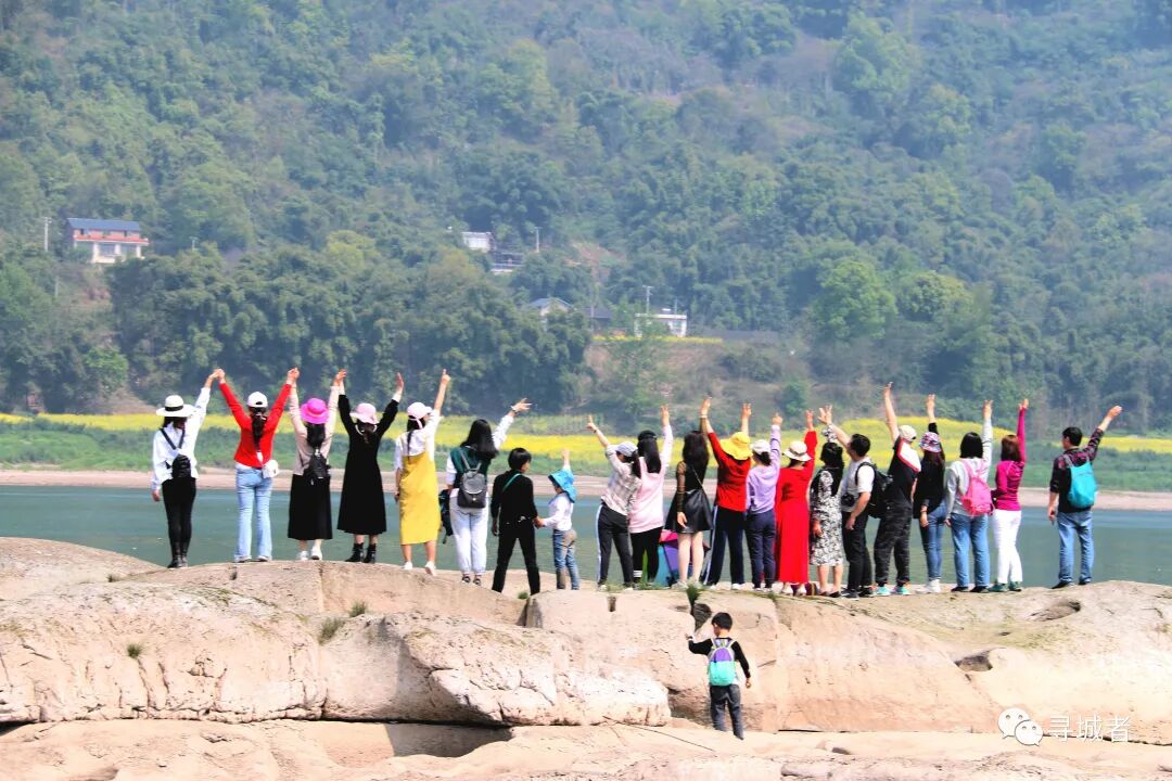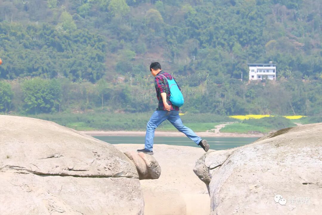大江大河大山城,重情重义重庆人。探索完江滩礁石,一行人简简单单的拍了个佛系合照,顶着大太阳原路折返岛内。