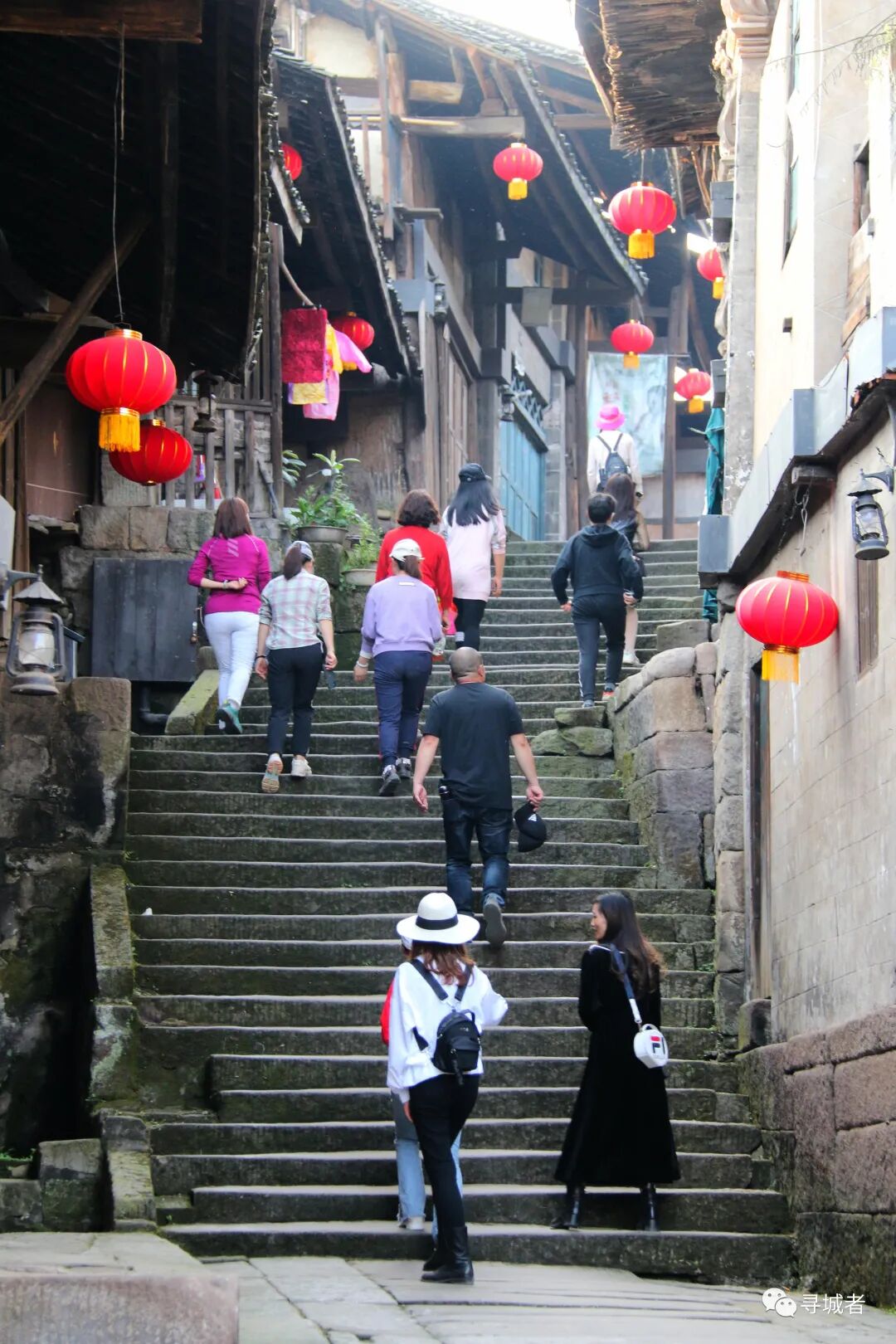 拾级而上,沿街建筑多以青石为基、砖木为墙,奇檐斗拱、雕梁画柱,从下往上看更是错落有致、美不胜收。