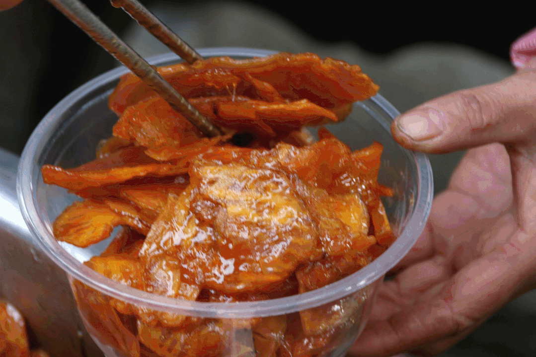 就是这种色泽鲜艳的片状甜点—糖薯片