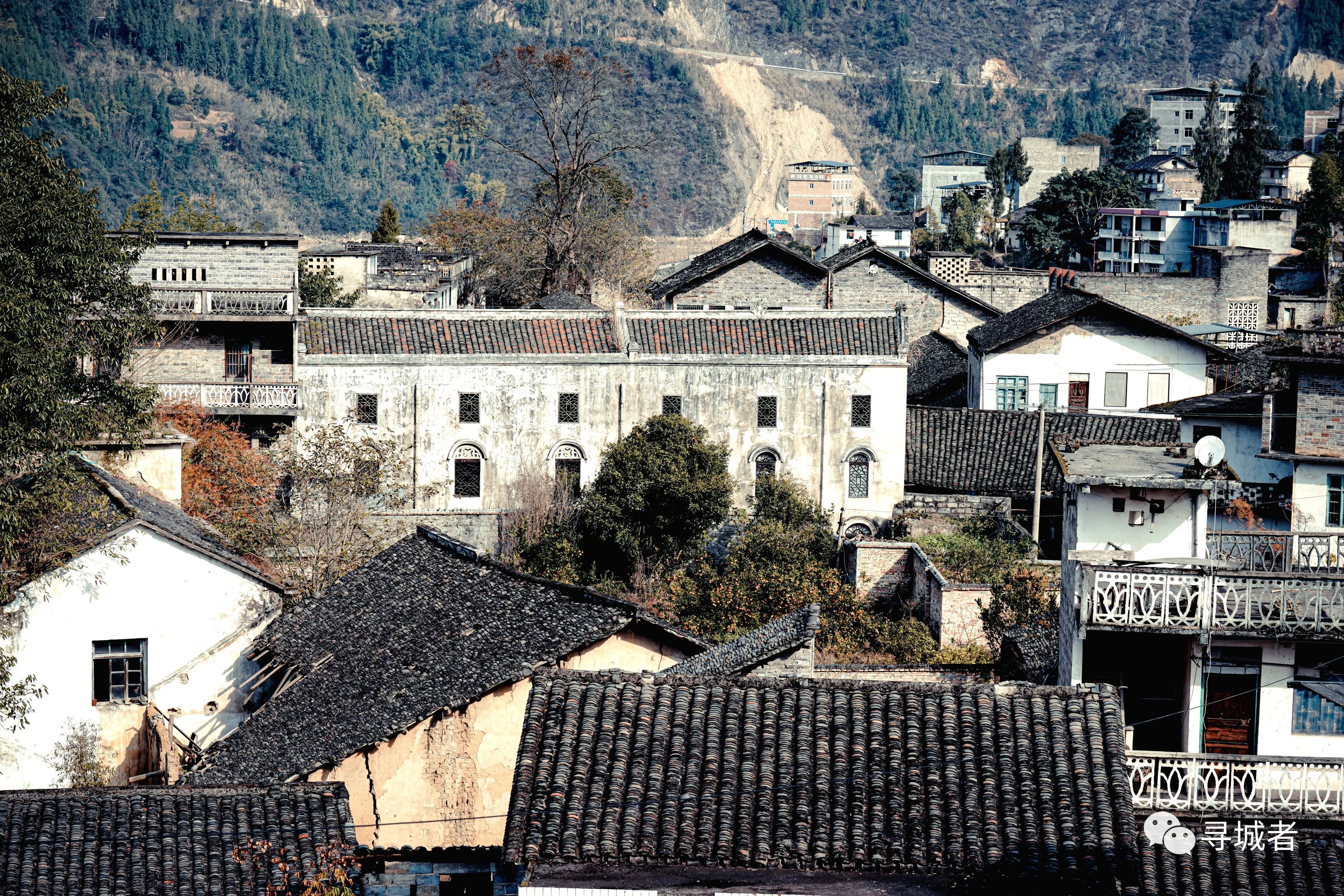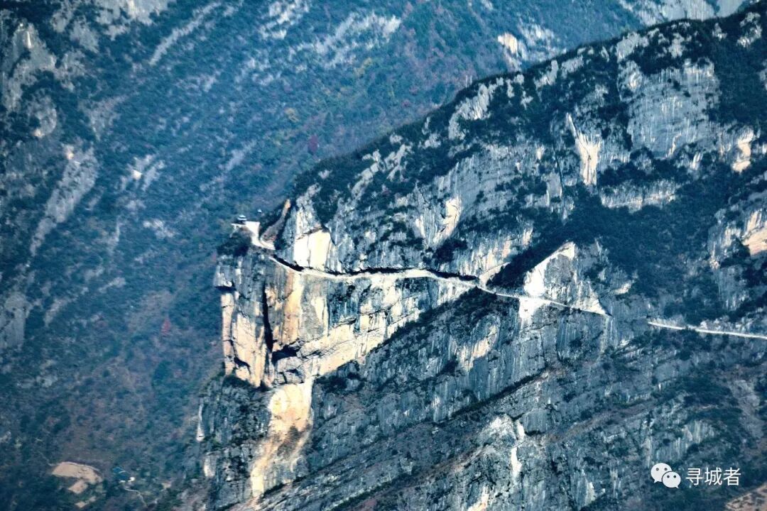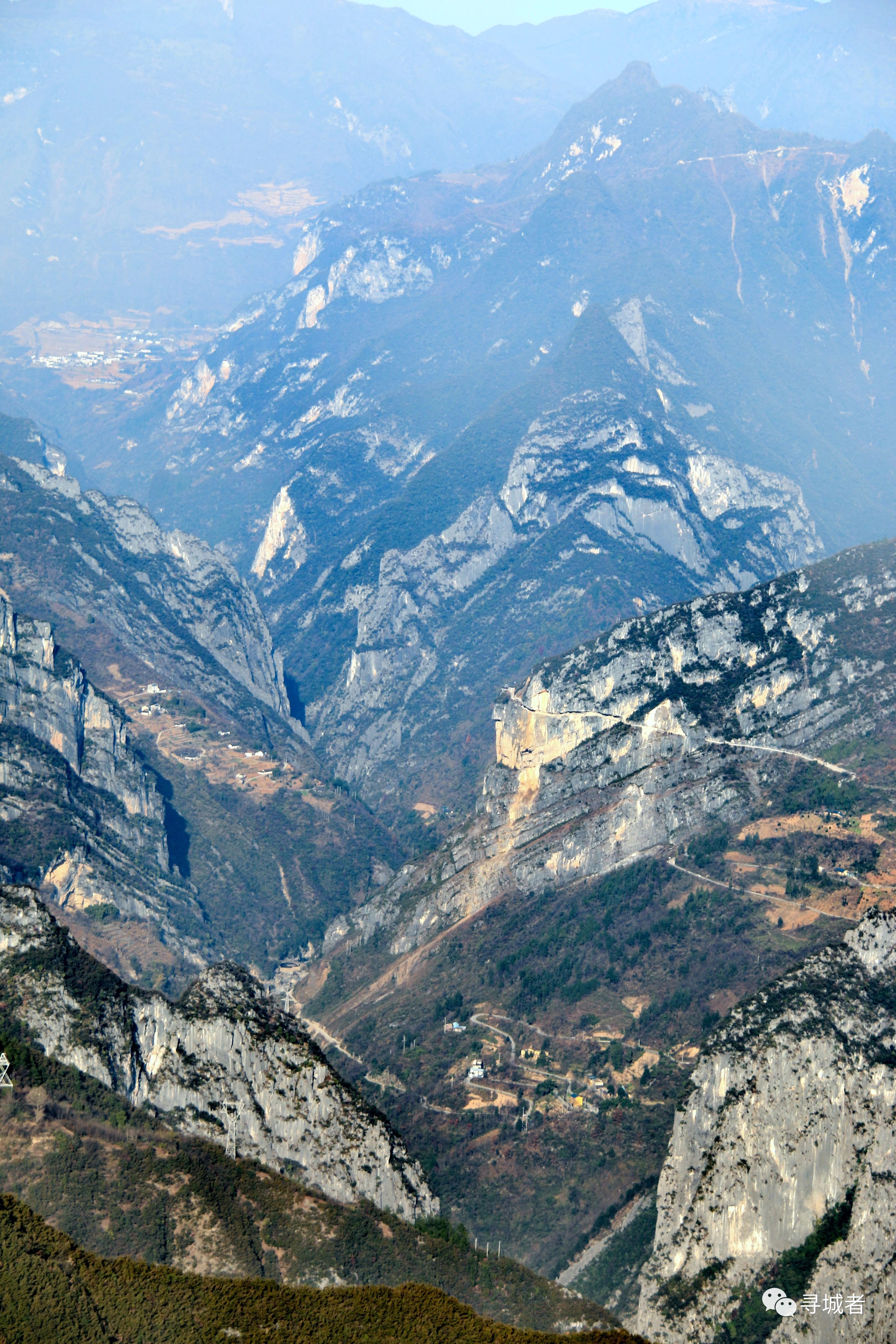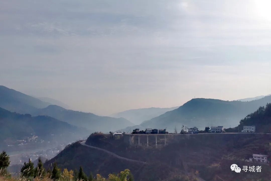 公路绕着圈向谷底的龙溪古镇蜿蜒而去