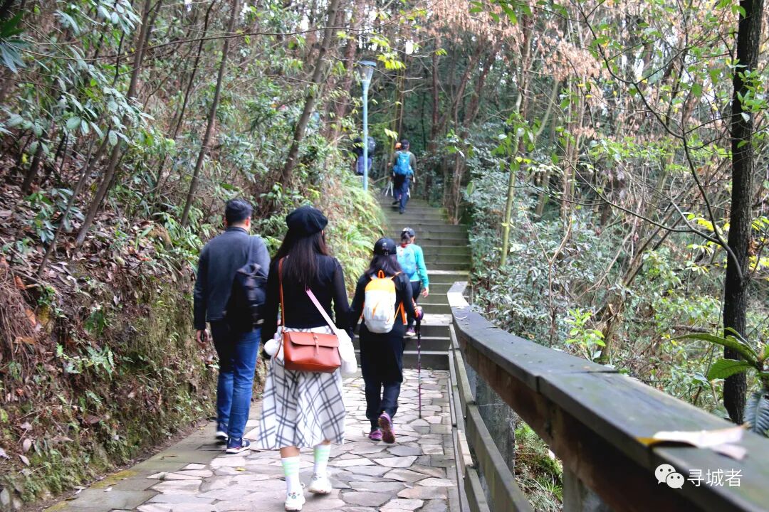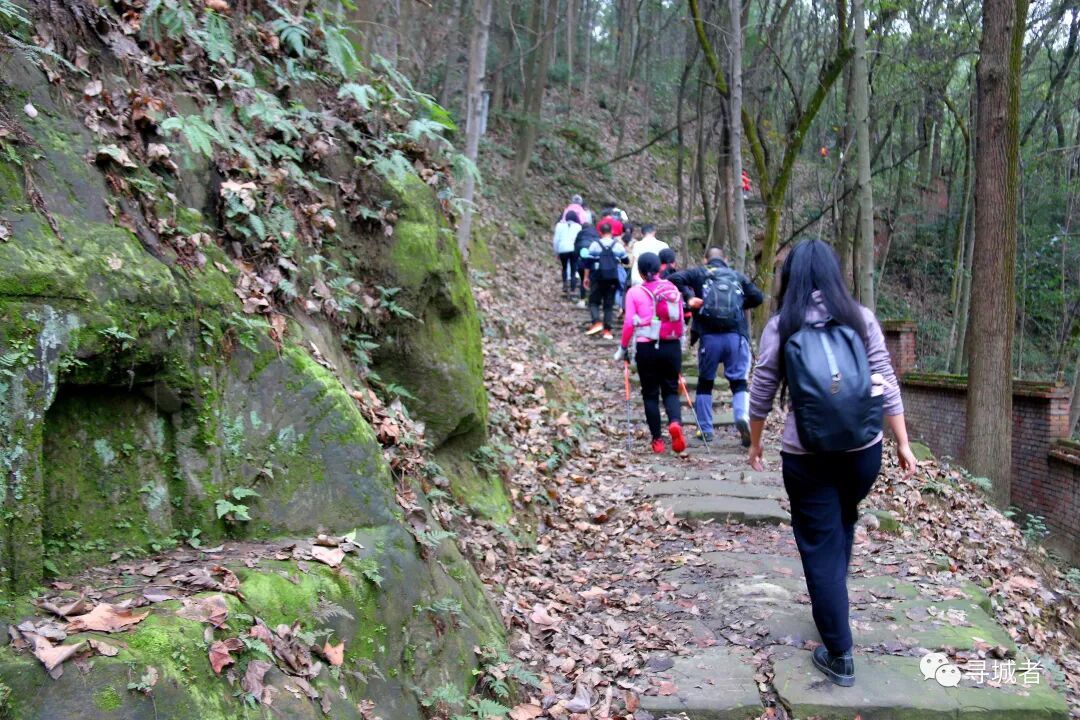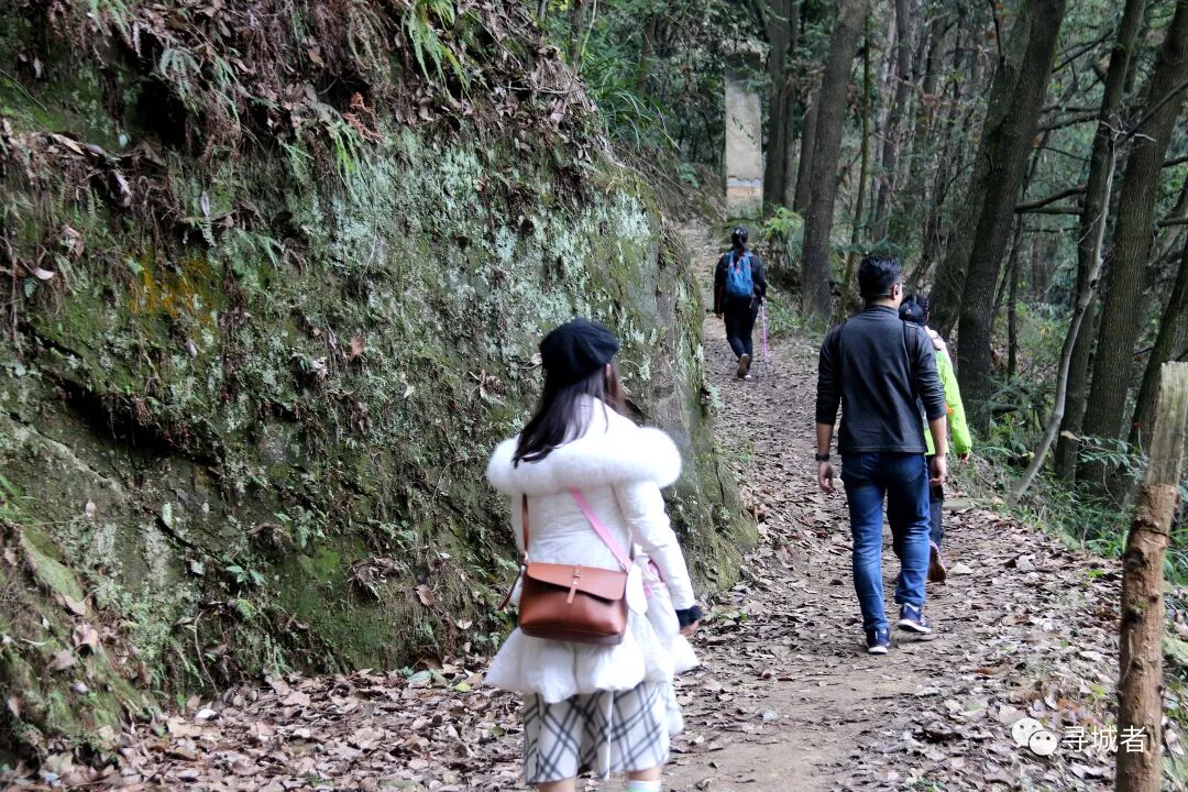 歪歪扭扭的条石板在枯叶和树林间蜿蜒