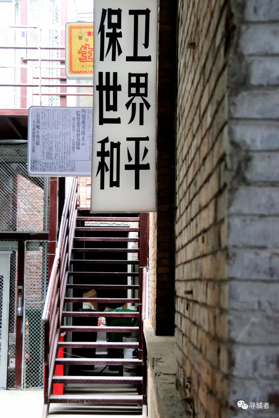 拖把倒挂在锈迹斑斑的铁质栏杆之上