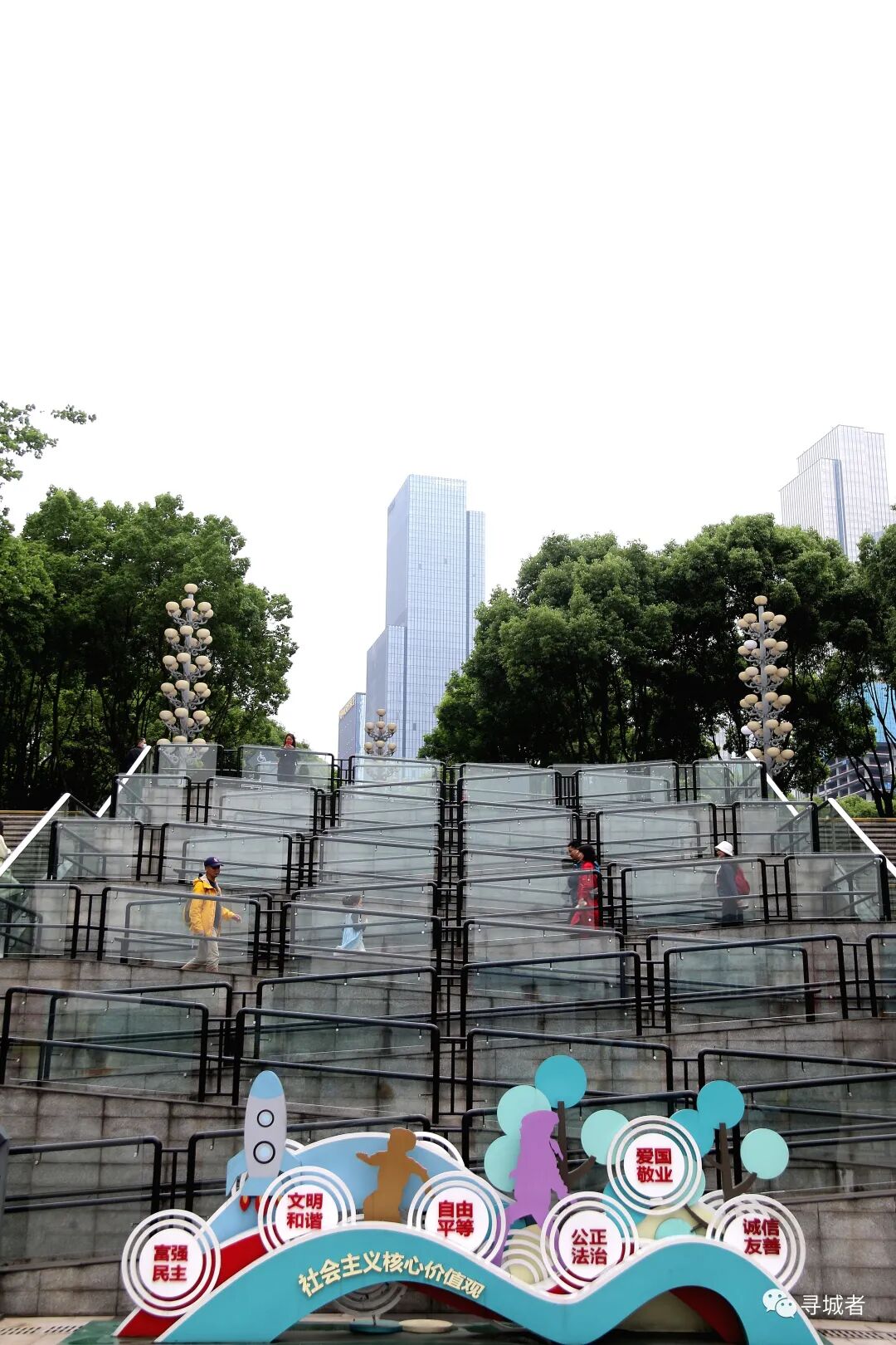 沿着心打造的滨江步道抵达江心