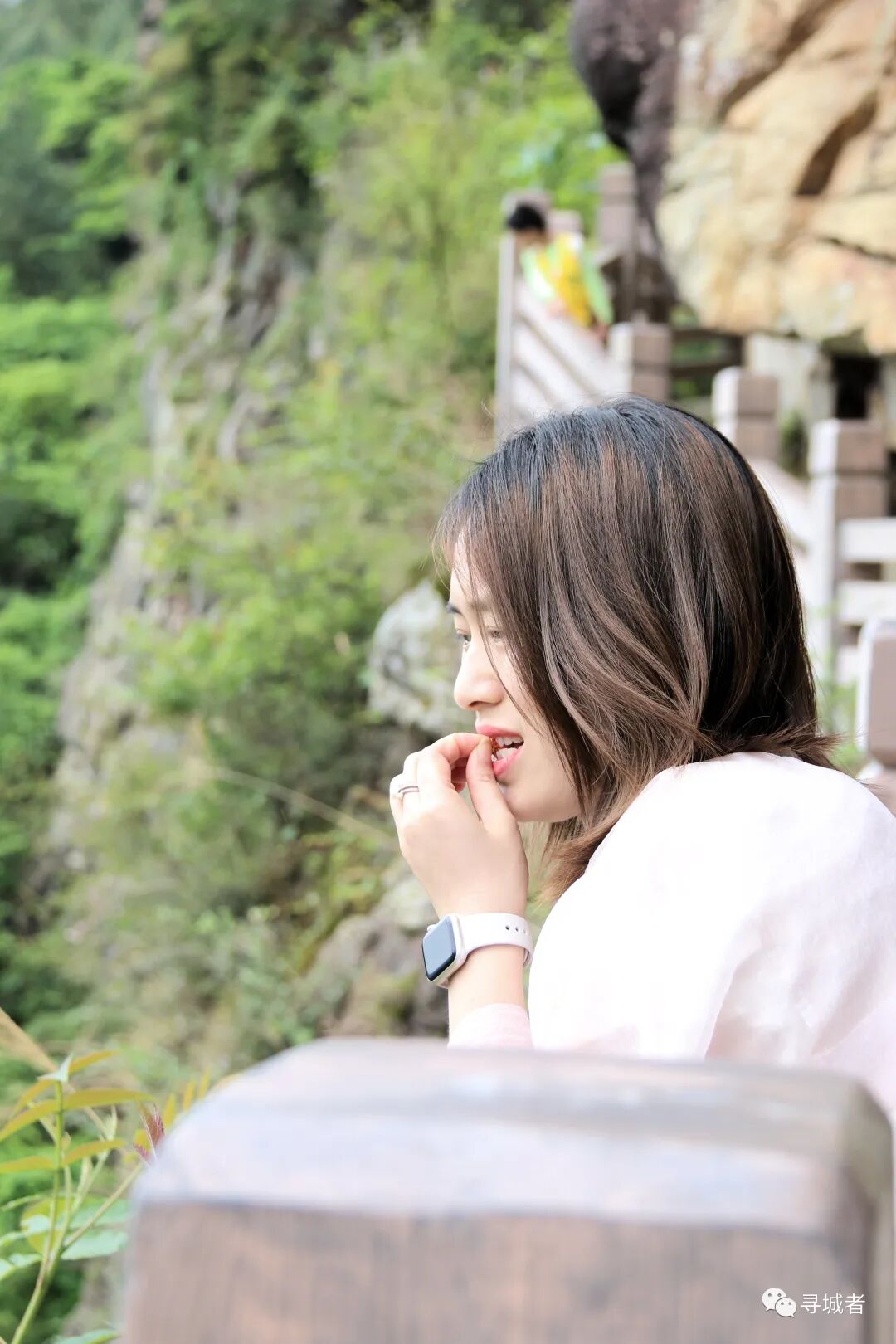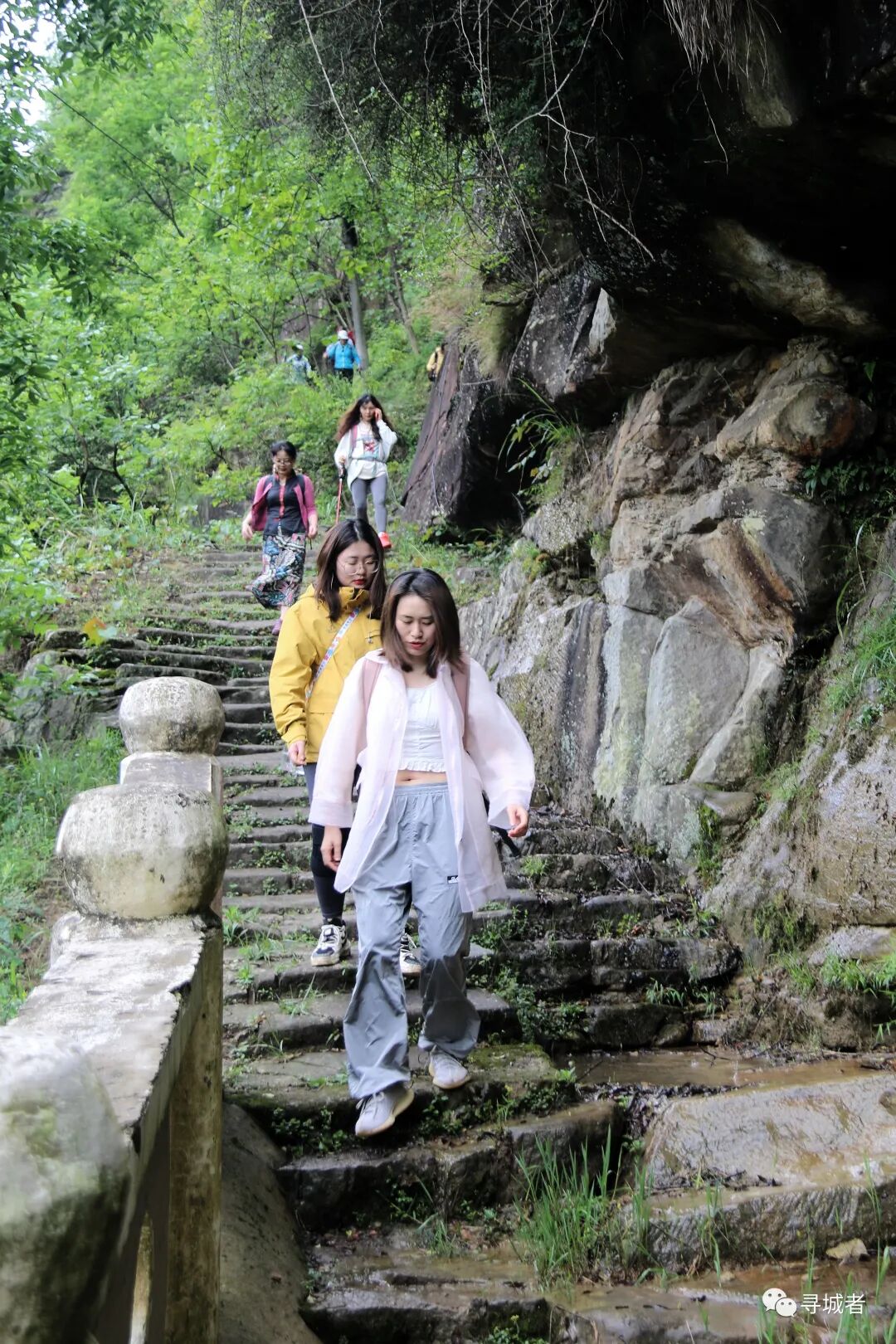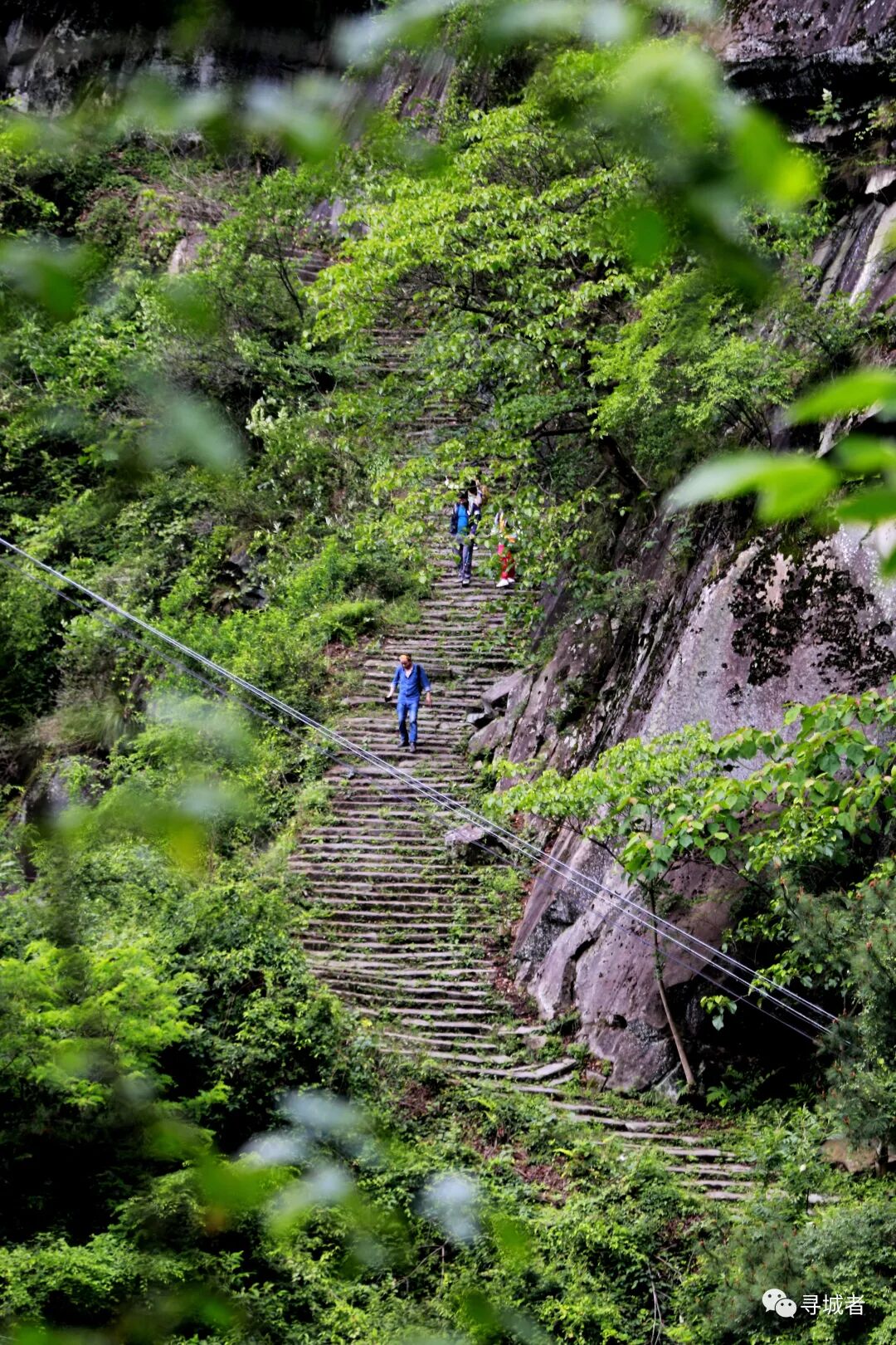 踩着光滑的青石板走下百步梯