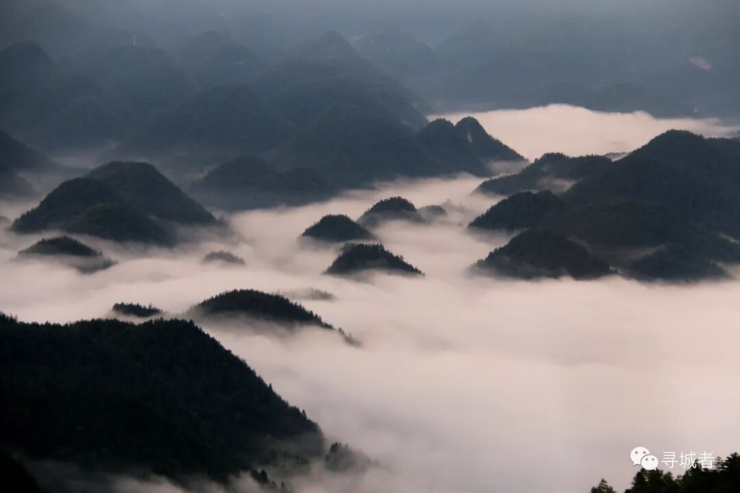 流动的云海让峰丛宛如一座座孤岛