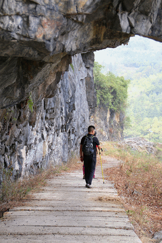 乌江左岸的绝壁上一条丝线蜿蜒其间