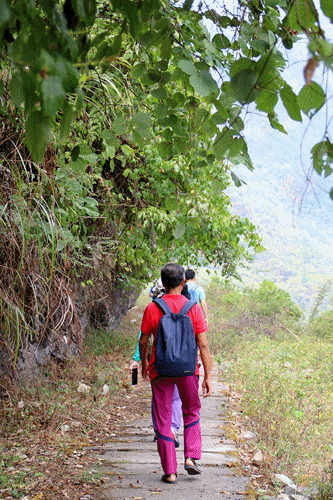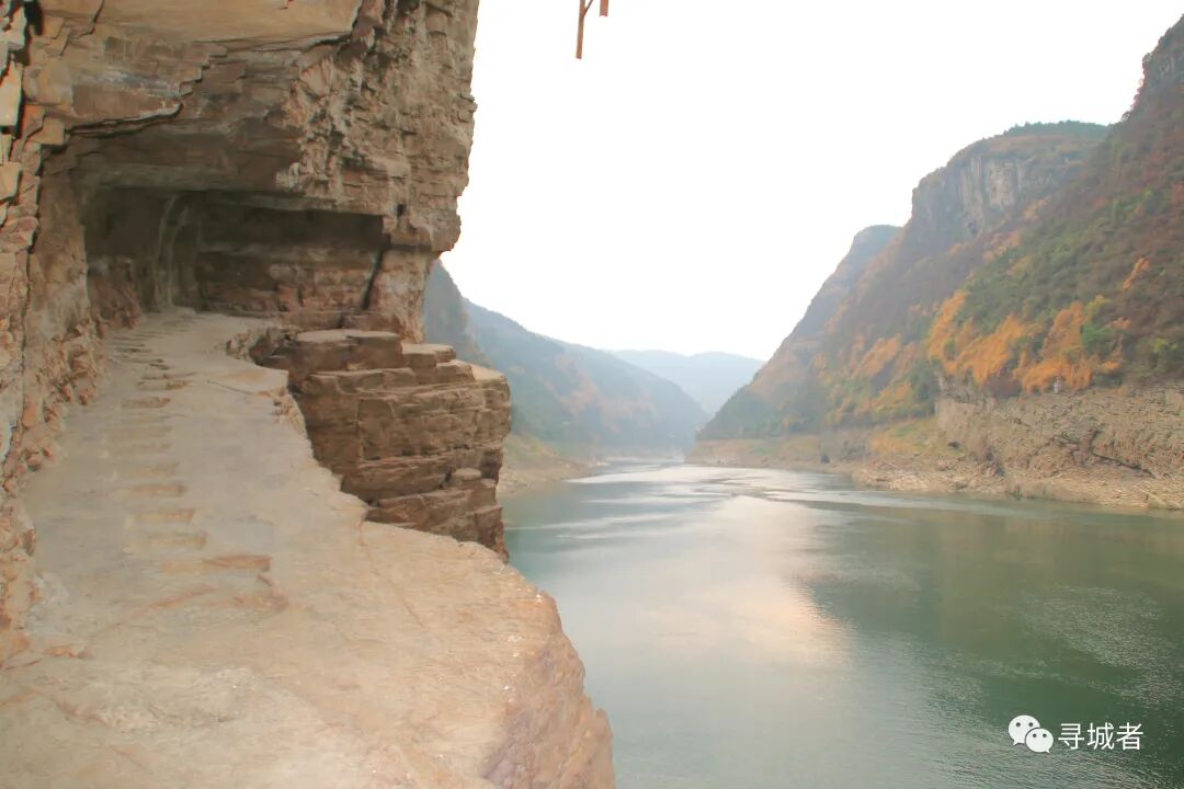 回头眺望鹦哥峡的深邃和纤道的险峻
