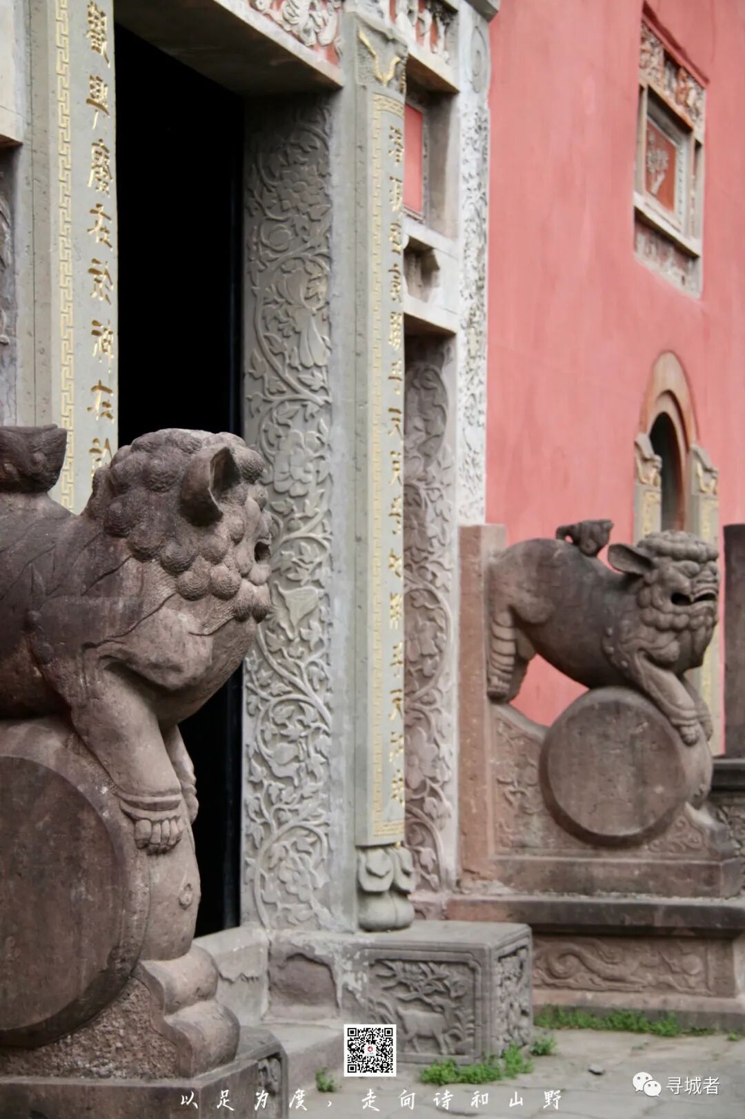 石门瑞兽雕花窗,木楼砖墙飞檐廊