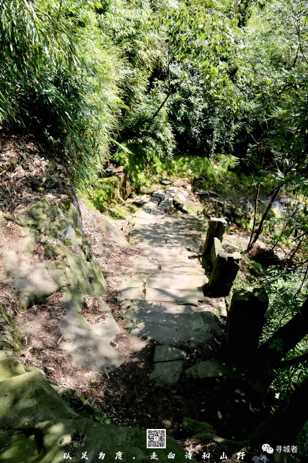 一米左右的条石古道在山林间延伸开来