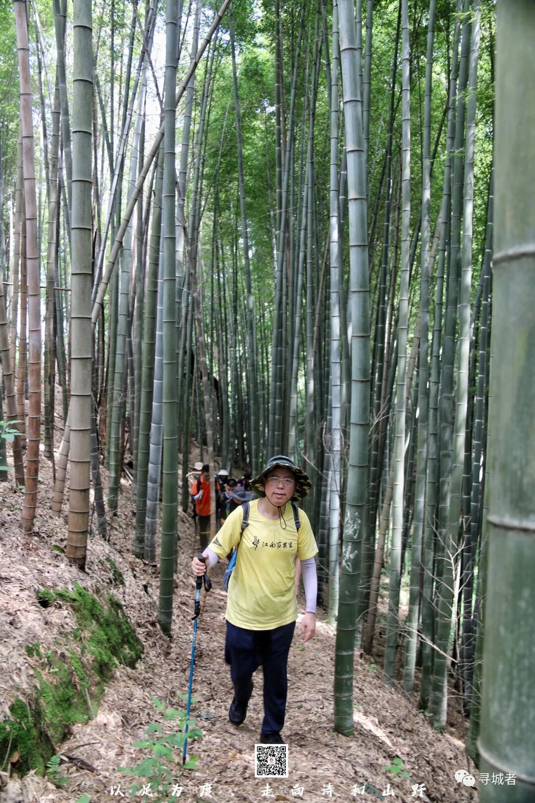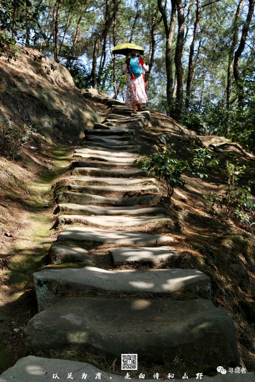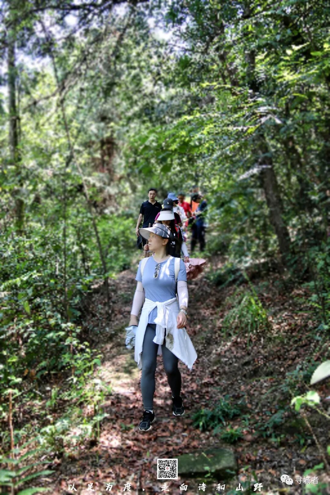 沿着林间的便道行走于山野