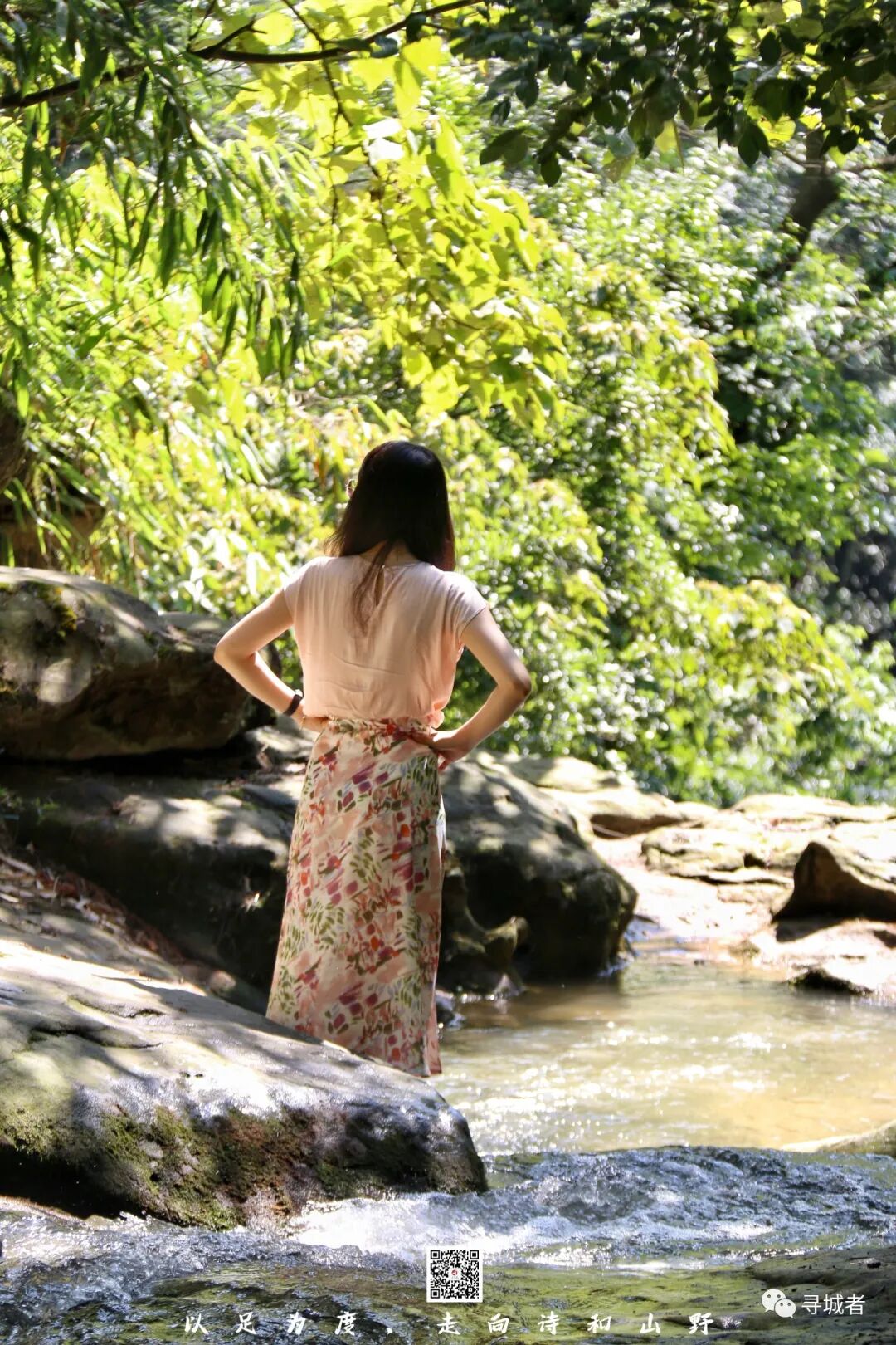 停驻溪边享受着沁人心脾的流水