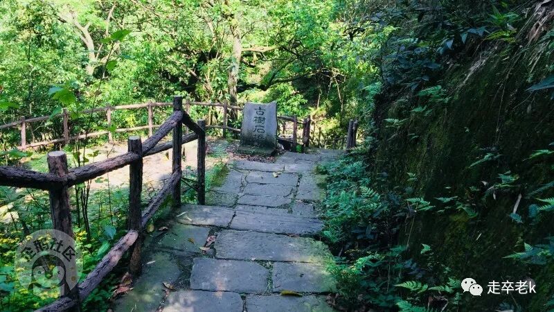 步道打理得还不错,青石头铺就的古道之上时不时可以看到废弃的明清墓碑石,望鬼神勿怪。古道在山里盘旋蔓延,路旁是绿意森森,青草古木郁郁葱葱。