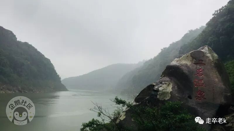 循着古道前行半个小时不到,行至北温泉的对面,顺着路口往下两百米的江边,二岩温泉静静的藏在江滩怪石峥嵘之中。