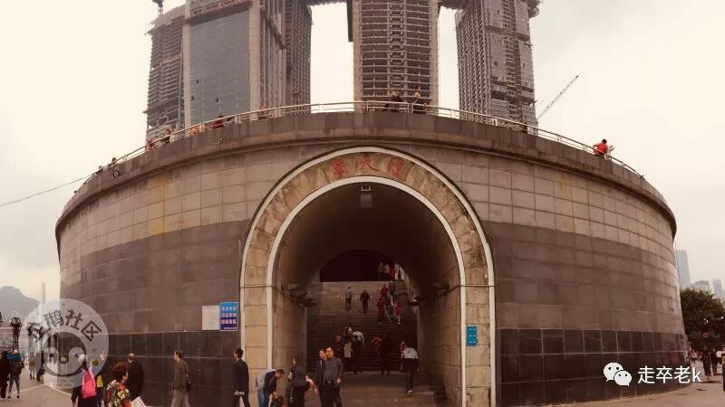 高高的朝天门哟,长长的石阶梯,背后还有无数的高楼林立。