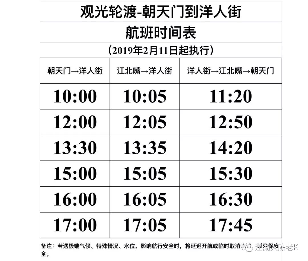 清风徐来舟船归,一日看尽山城美,你有一份朝天门-洋人街的轮渡时间表,烦请查收一下。