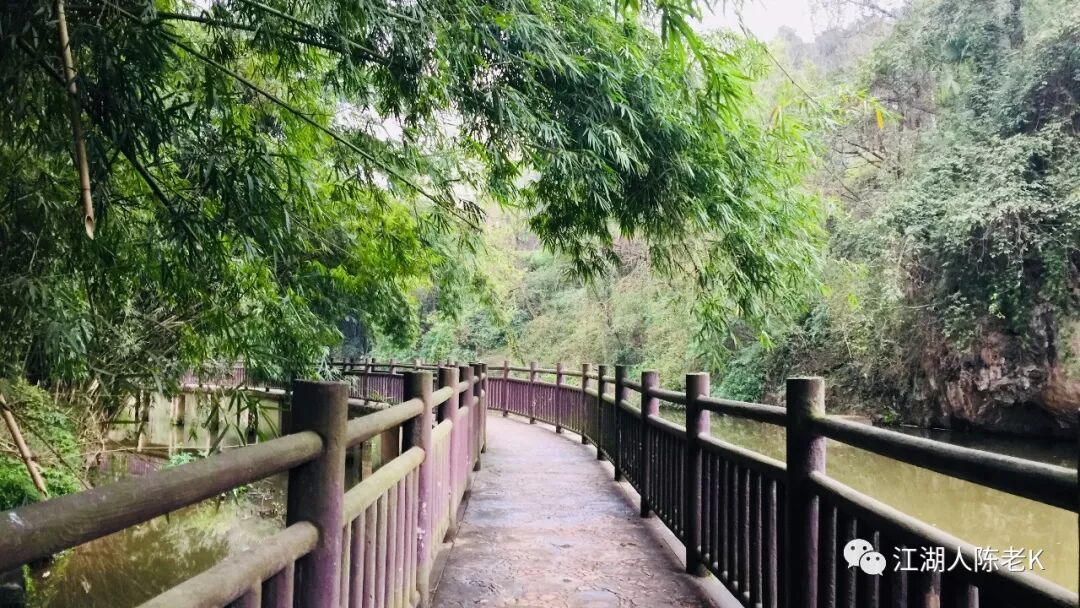 穿过铁桥下至江边,继续沿着花溪河岸的江边栈道开始今天最愉悦的行走。