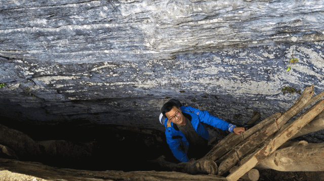 从腾龙后洞右边的密道往前,就是自然形成的一线天,穿过缝隙循着内里铺设的简易木梯攀爬而上,本次徒步峡谷之旅就算是顺利脱困...