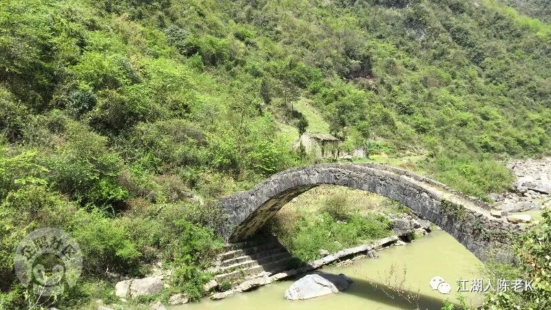 继续下行二十分钟的样子,终于下至山谷,穿过一片油菜花地,傲立两岸的朱家河石拱桥傲立两岸。