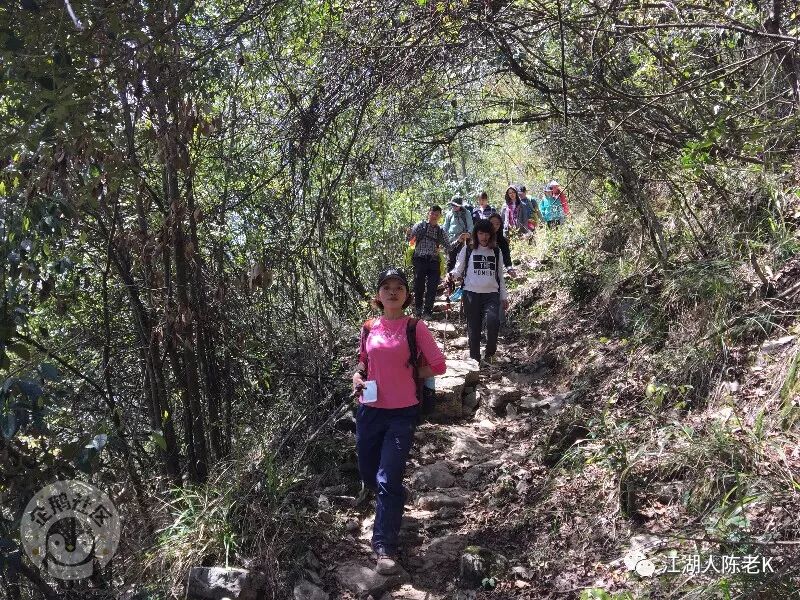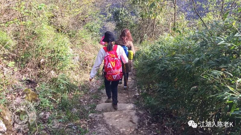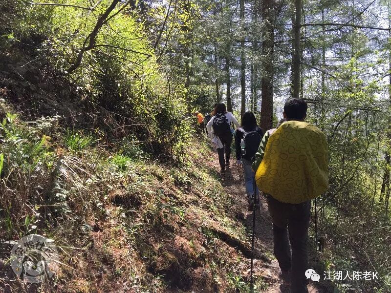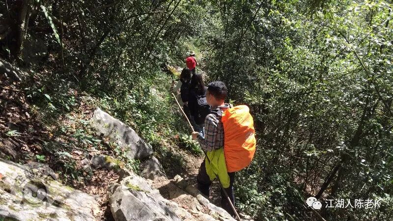 密林、小道、流水、阳光相伴,从缓坡小道到丛林密道,再到绝壁陡坡,小伙伴一路歇息一路继续。