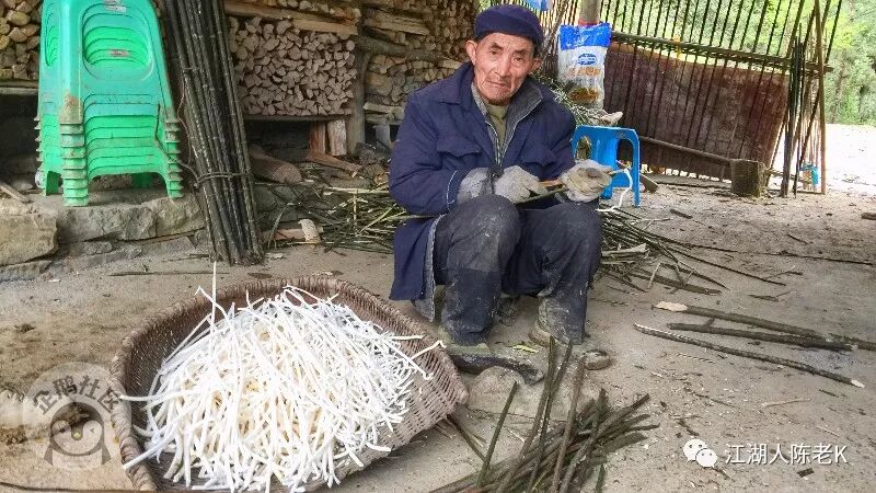 农家老者,正在使用工具获取一种天然的原材料,国家收购据说80元/斤,想想还真是值钱。