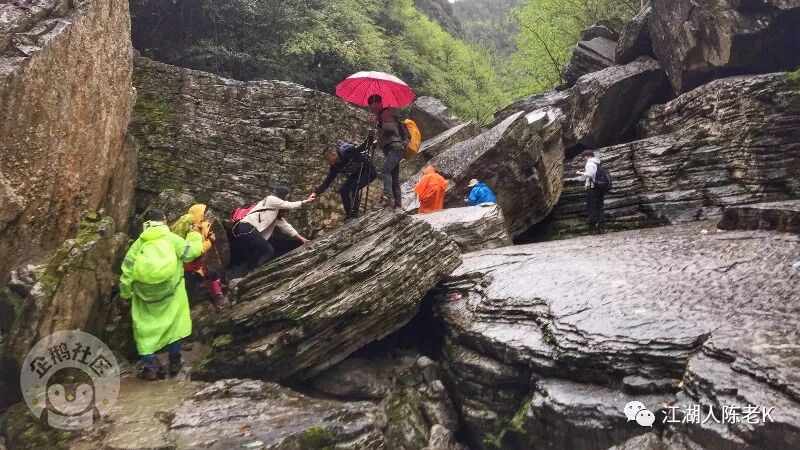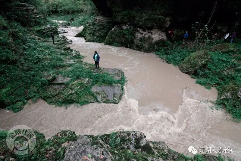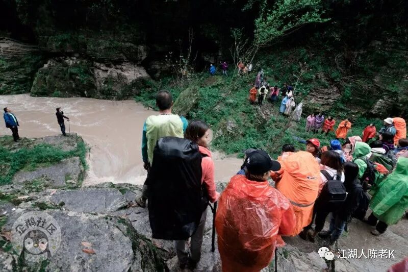 山谷丘陵地区,因为上游或者山上下雨,雨水全都汇集到河谷地带,从而导致下游地区爆发洪水,俗称涨齐头水,这次在清江古河床我们都遇到了,由于前面北京团的朋友移动缓慢占据了唯一前行通道,我对全都被拦在了河水这头,给我们带来了不小的困难。