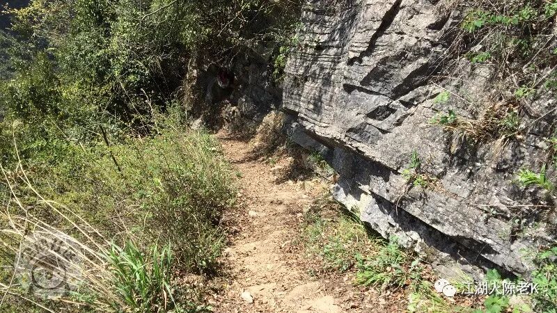 从山腰草坪出发,循着曲折往下的步道,开始在绝壁之上盘旋,踏着先人踩出来的小道,不由得感慨前人的巨大贡献。