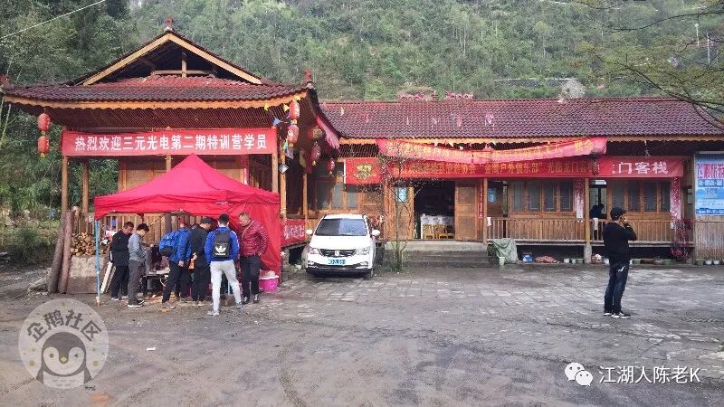 经过半个多小时的水泥公路和机耕道的穿行,就到了徒步线路上一个重要的驿站-古河床京兆山庄,在此看到了很多渝F开头的小车,随着交通的便利,想来重庆万州方向过来徒步游玩的老乡该是非常居多。