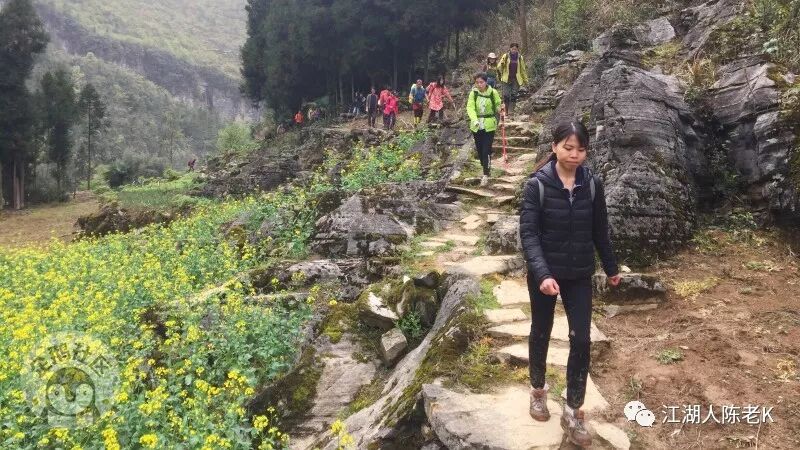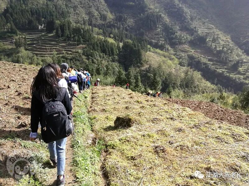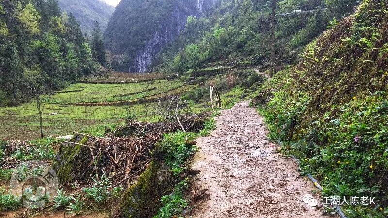 待到所有的小伙伴都下到山来,在黑洞人家补给了登山拐棍之后,继续穿行在泥汤铺就的山腰小道之上,时不时的都会听见后面小伙伴的惊声尖叫,每走一步都需要打上十二分的小心,一不留神屁股就会华丽丽的与大地亲密接触。