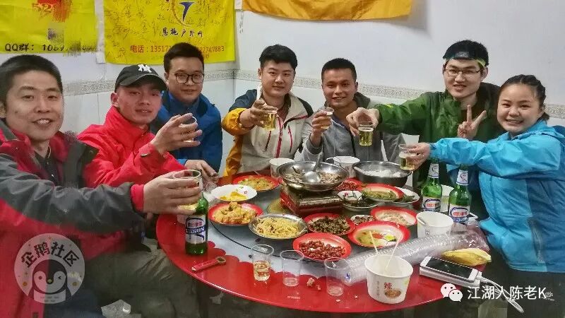 一杯敬过生的小姐姐,一杯敬扫尾小分队的慷慨援手。从银河洞河谷受阻,到密林野穿脱困,再到翻山越岭夜爬上山到农家乐,时间也就是不长不短的两个小时左右,短短两小时发生了诸多故事,其他不赘述,只想说明两点:首先,咱们重庆驴友还是很耿直,一展重庆好心人的雄风;其次,出来混户外,自己要有风险意识和团结协作。