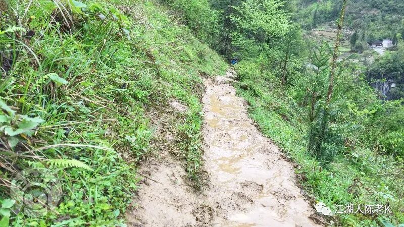 泥泞不堪的山道,落脚打滑,每一步都颤颤巍巍,让人无语。