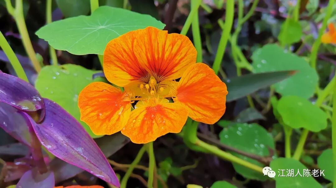 小小的花园内各色花花开得正艳,想来主人也是个颇为爱生活之人,连落地生根勒种花卉都养得根茎壮实,花朵艳丽。
