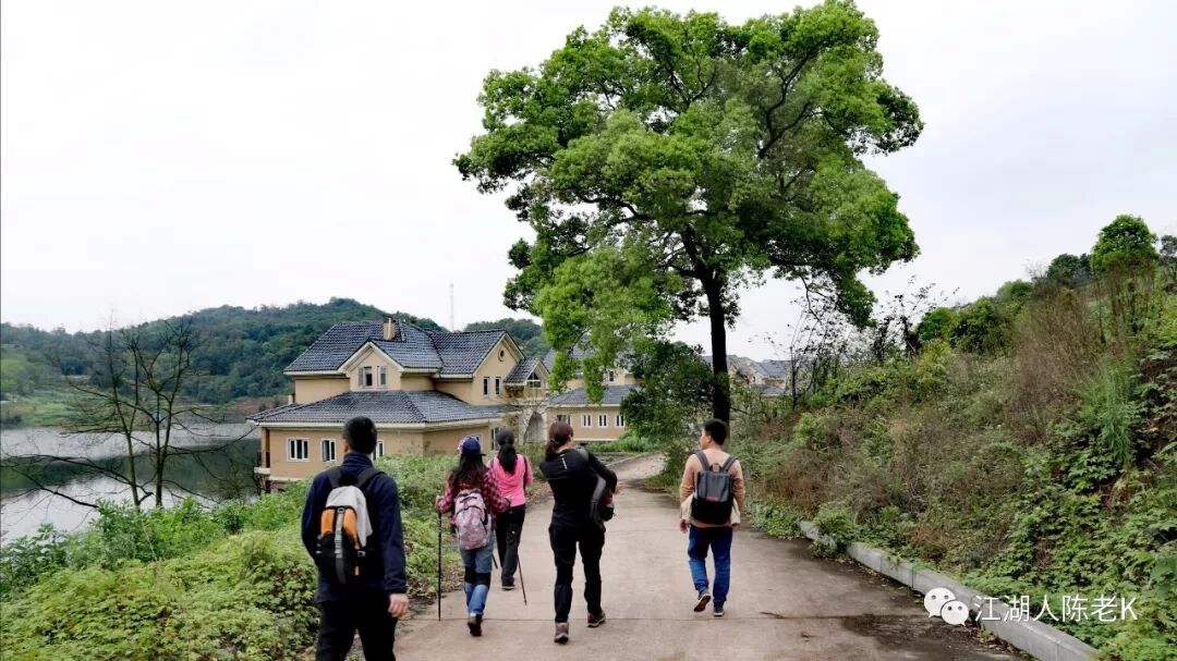 古老的驿道下到山下,渐无痕迹可循,穿过百家店水库旁边重医的康养之地,沿着水库边的公路往大坝行去。