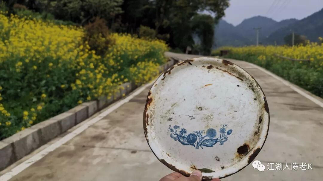 在路边的农家院外,丢弃的瓷盆盖子很是好看,饱经风霜依旧还是如此炫彩夺目。