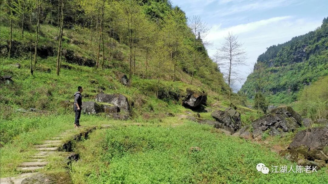 爬上手扒岩,就正好爬上了半山腰,原始老林的气息扑面而来,护林员踩出来的道路在山间林里曲折蜿蜒。