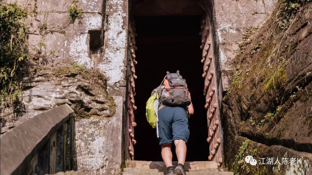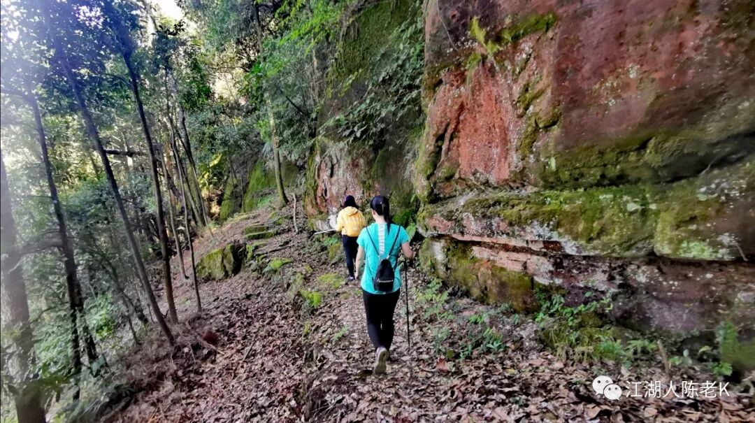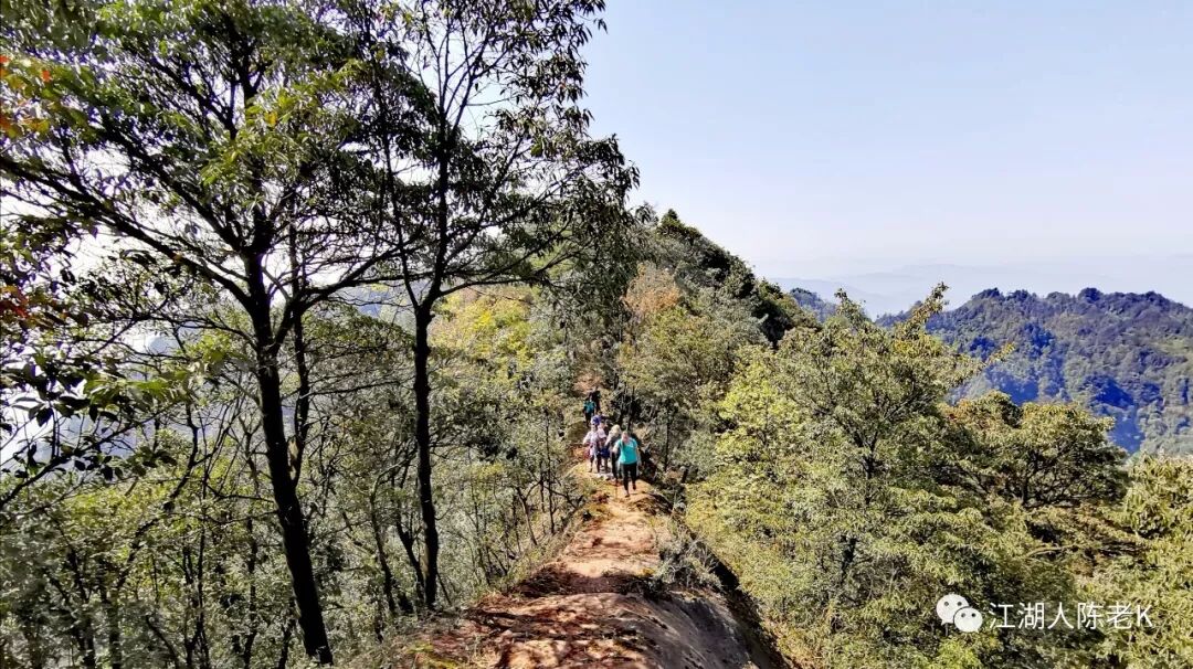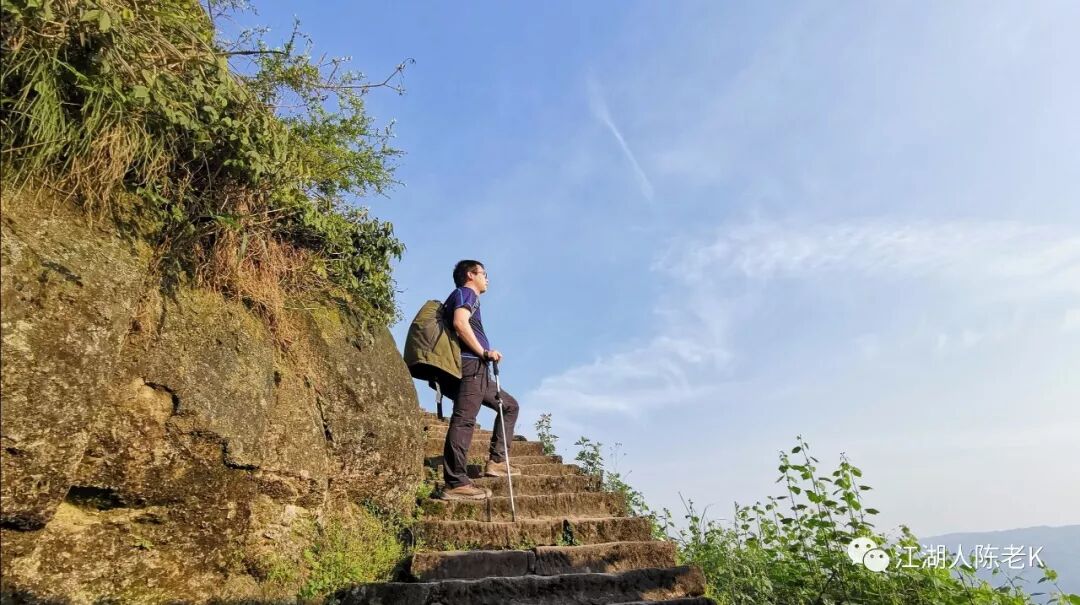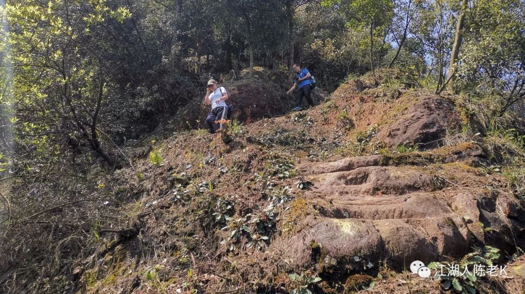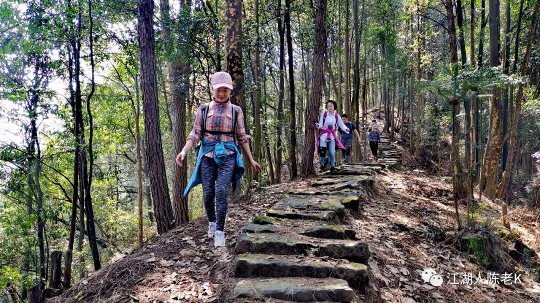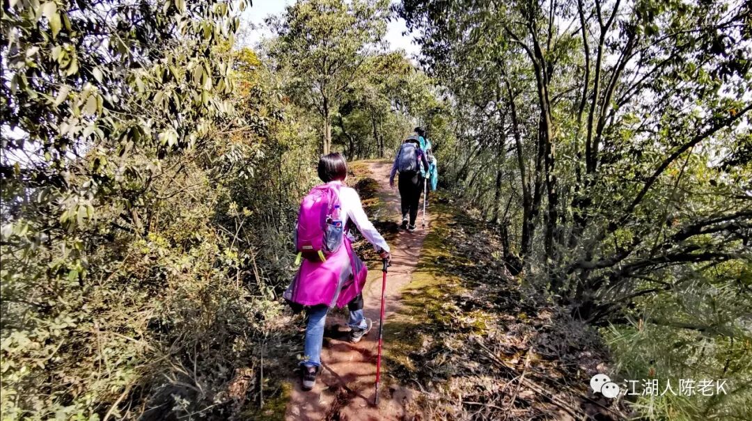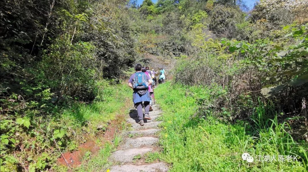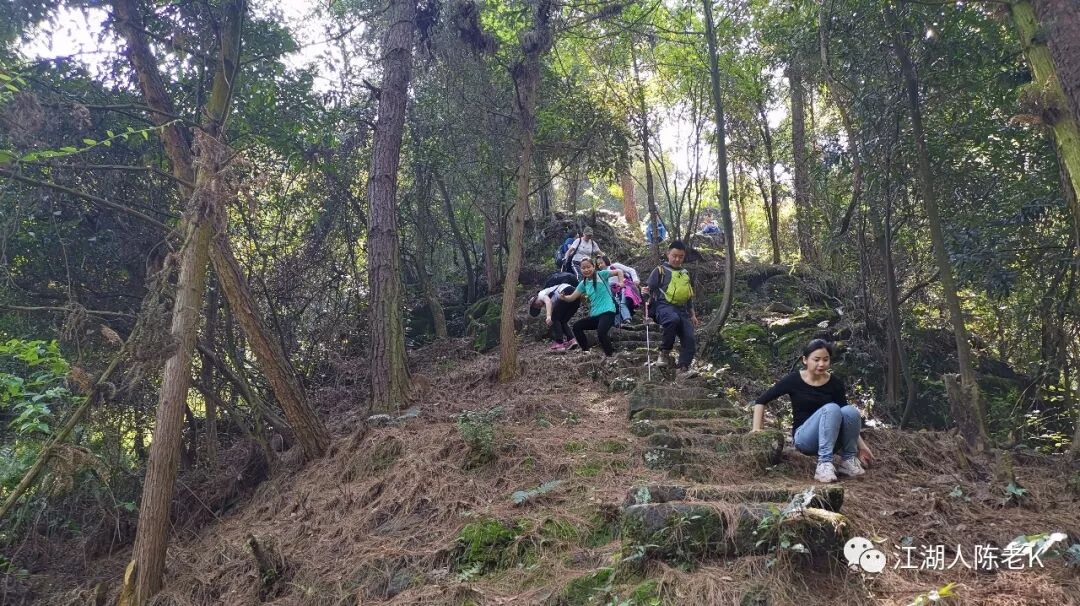 山脊的条石步道由于树林茂密,大多长满青苔比较湿滑,行走其上稍不注意那你可能就要摔跤跌倒,于是乎一路走来时不时的听到小伙伴的尖叫,幸好天佑我队,一行人基本上没有什么大的事情发生。