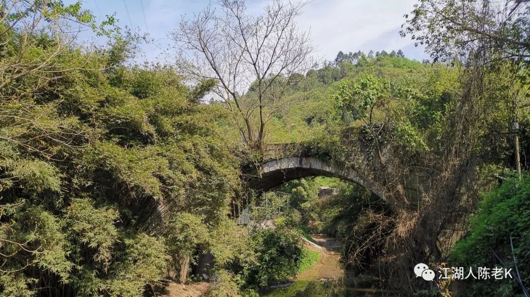 历经一个小时的下山急行,终于下到三角镇上,路边河沟上一座废弃的石拱桥很是美丽。