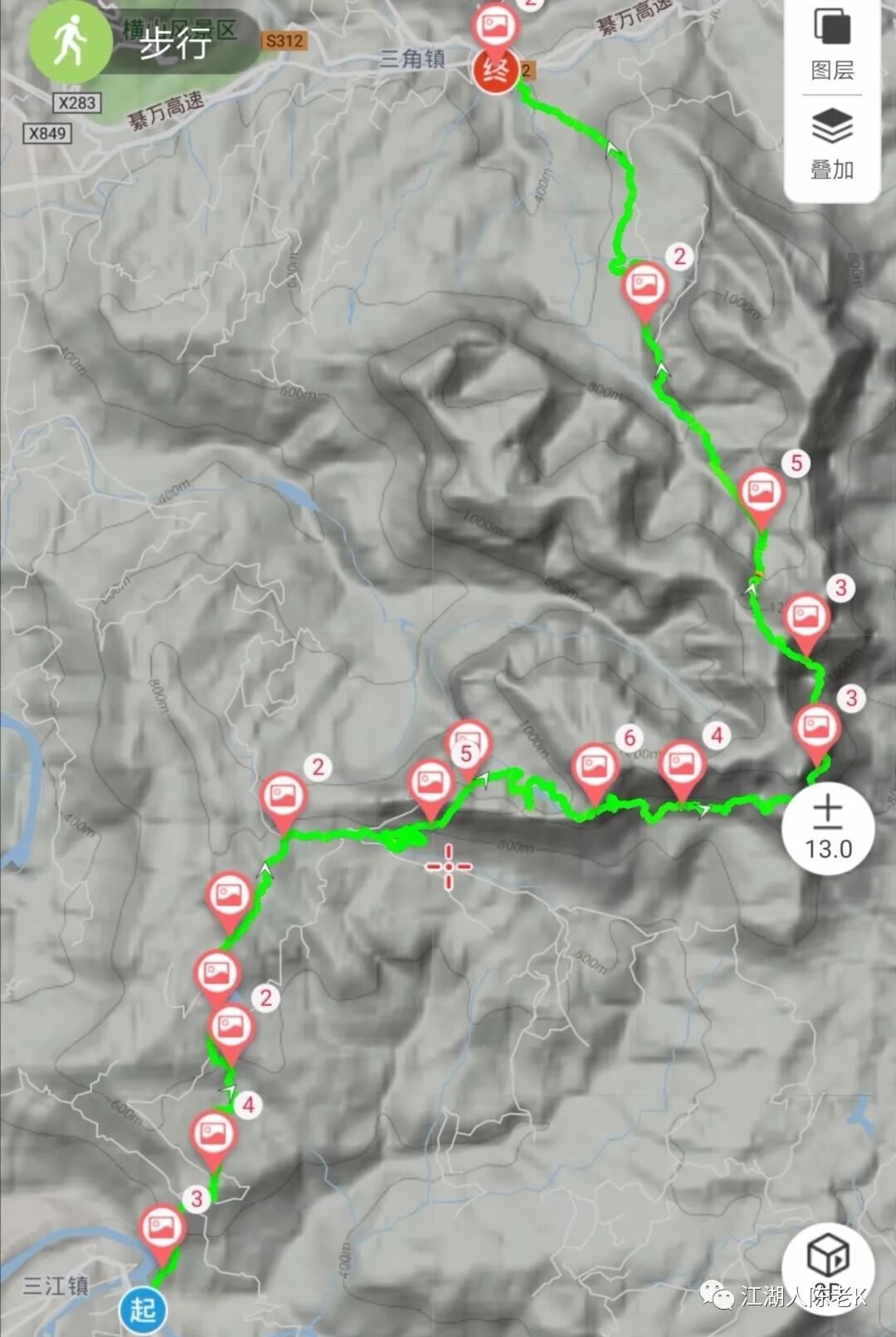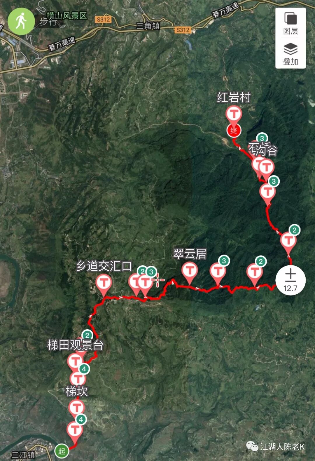 此次出行,我们大致的徒步线路,三江到白云观3个小时,第二天瀛丰水库到红岩坪4个多小时,红岩坪到三角镇一个半小时。