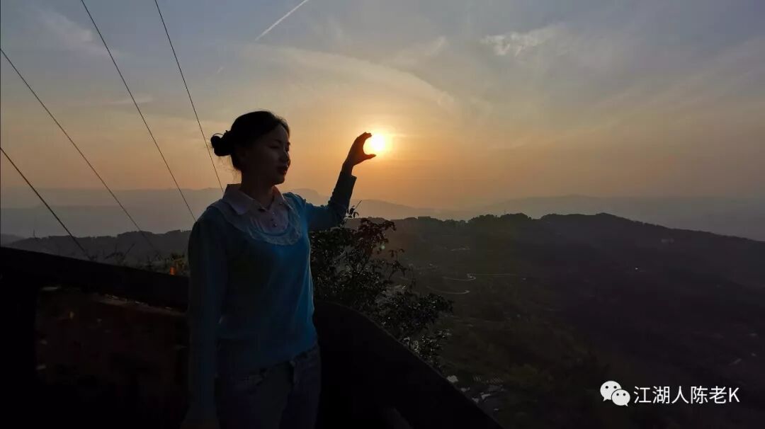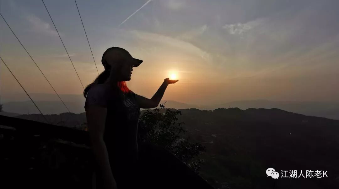 把落日当一颗小球,举手投足之间牢牢抓在手里。