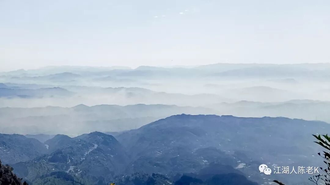 站在山腰眺望远方,远山层峦叠嶂,加上云雾缭绕,颇有些水墨山水画的味道。