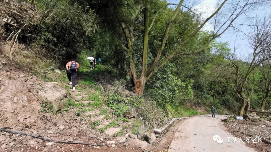 果园步道上到公路,顺着公路往前数分钟的样子,在竹林边的梯坎处继续穿行小路节约时间和路程。