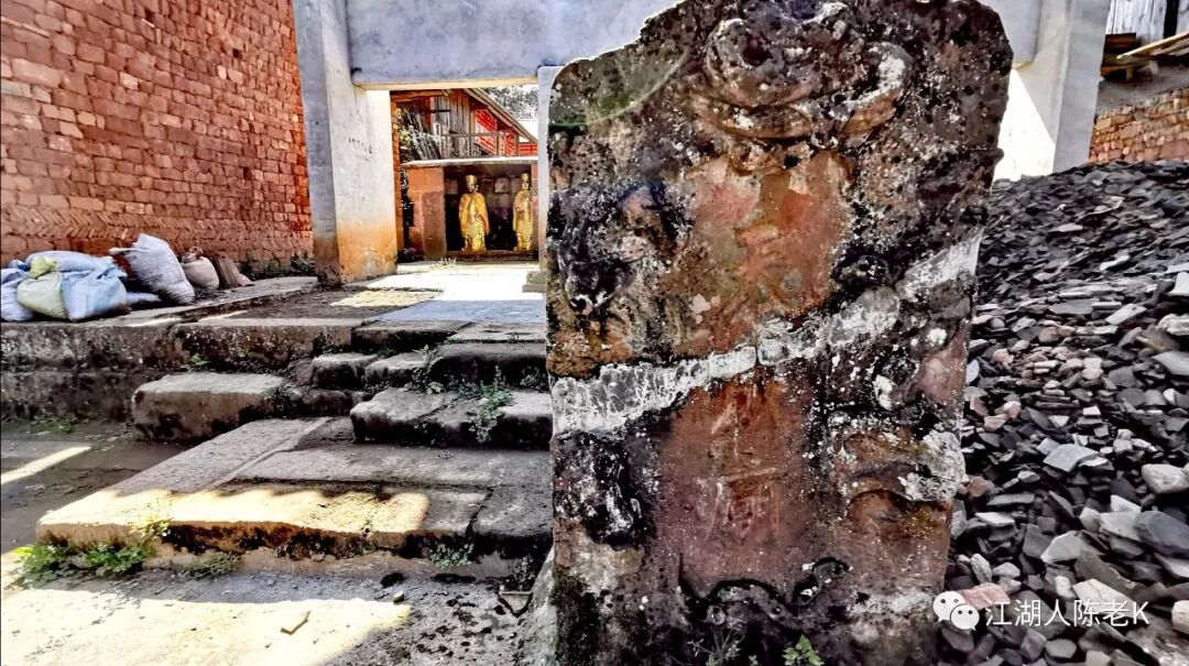 下到一个T字形的路口,一座石敢当的小神龛,路边的石头上依稀还有语录留存,不由得感慨那个时代真的是很热情啊。